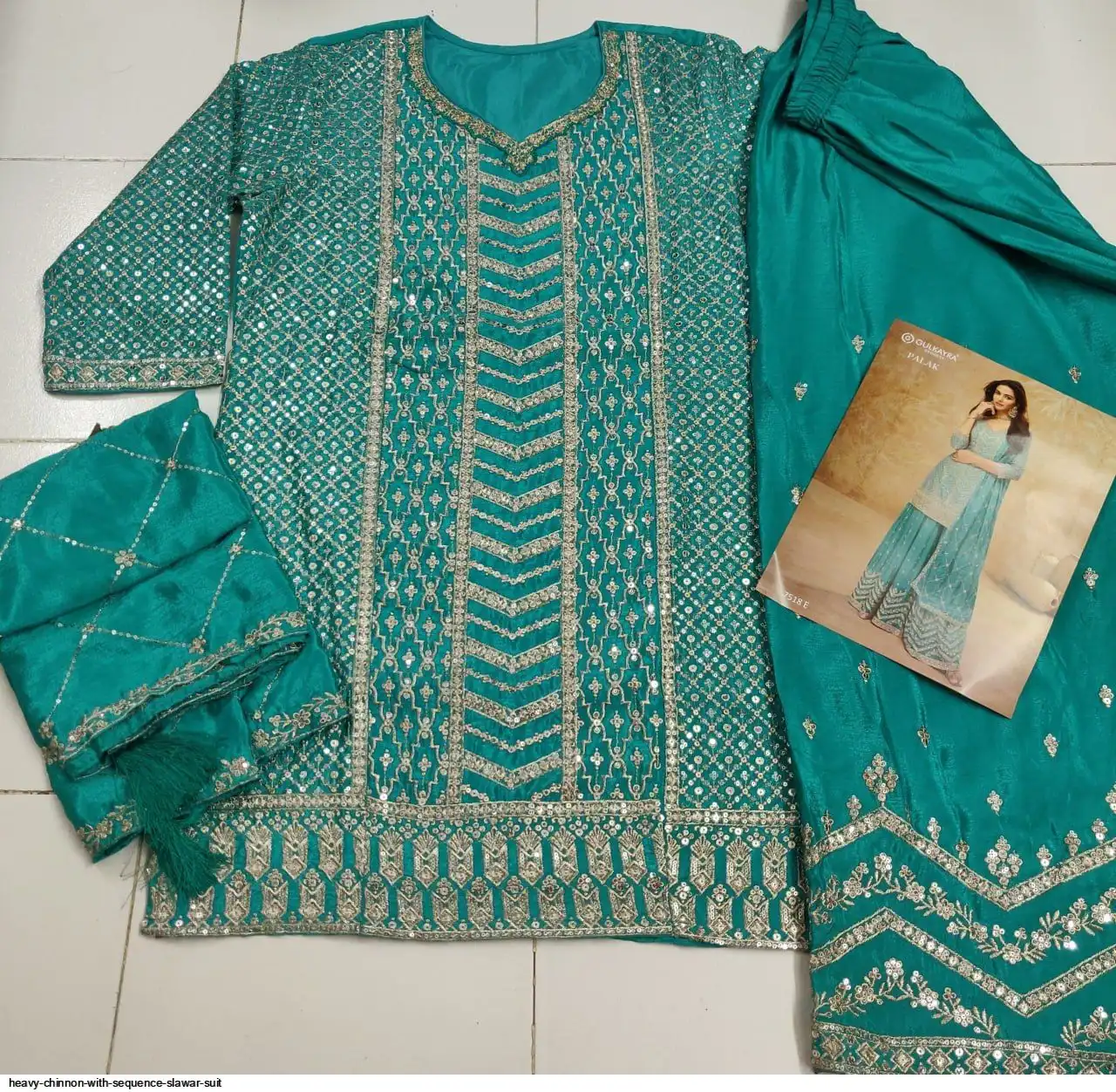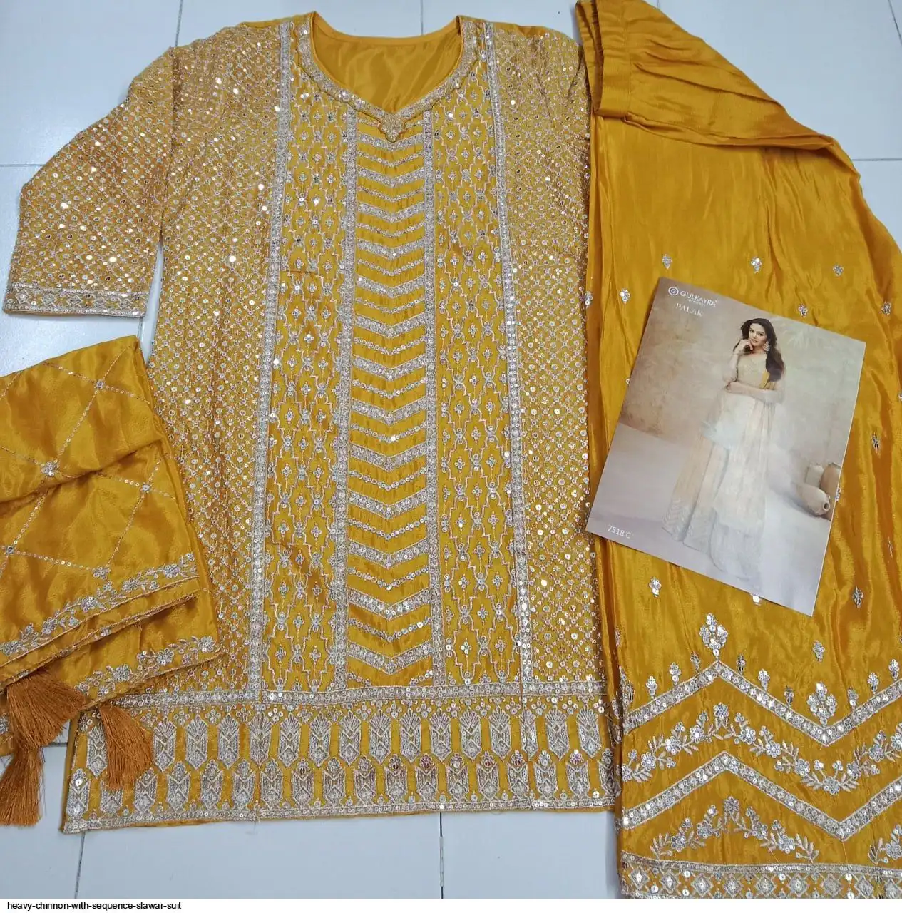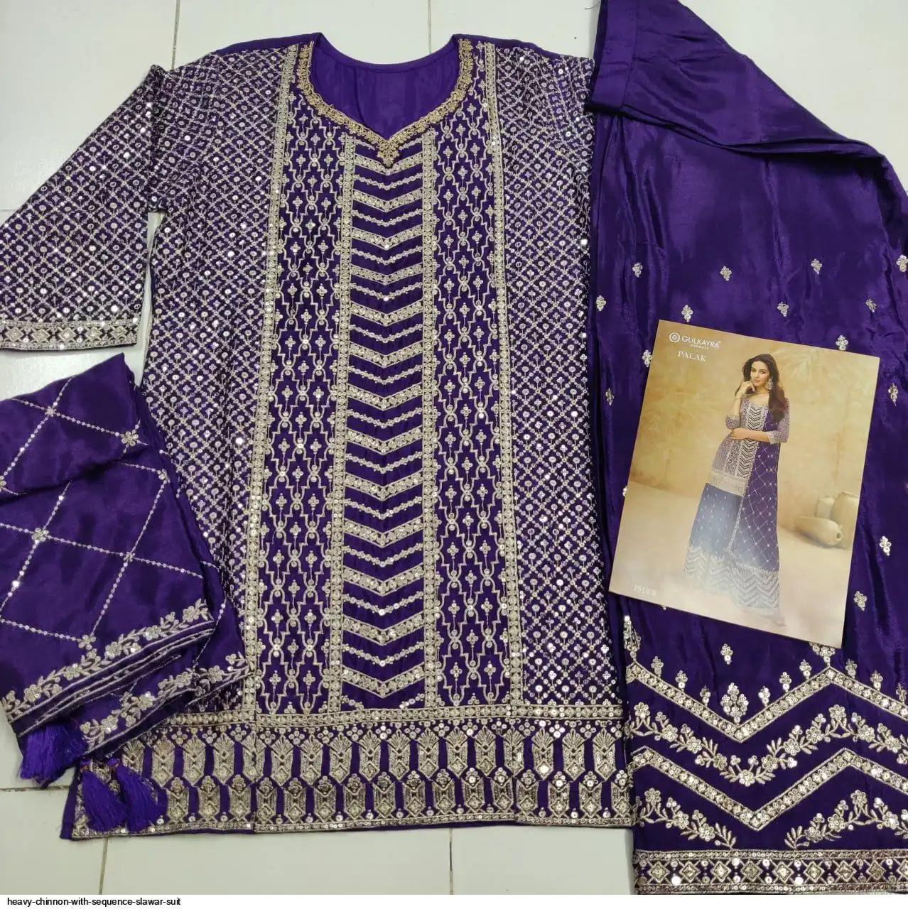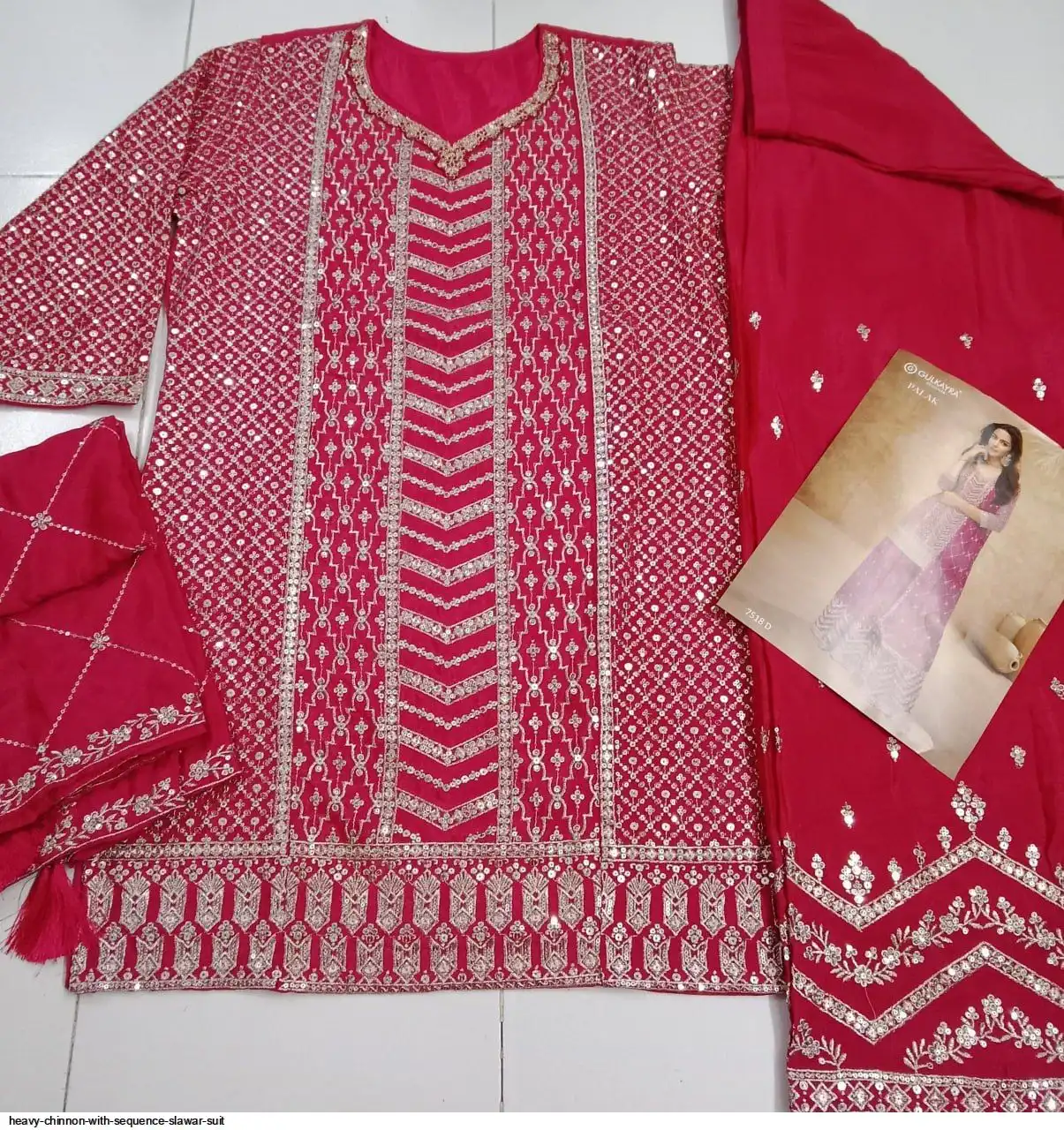 TOP :- Heavy ChiNnon With Sequence Embroidery Stich Work