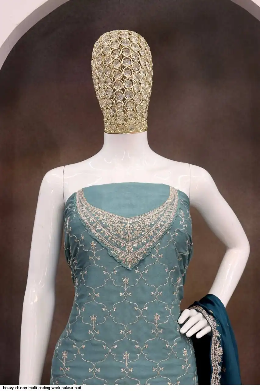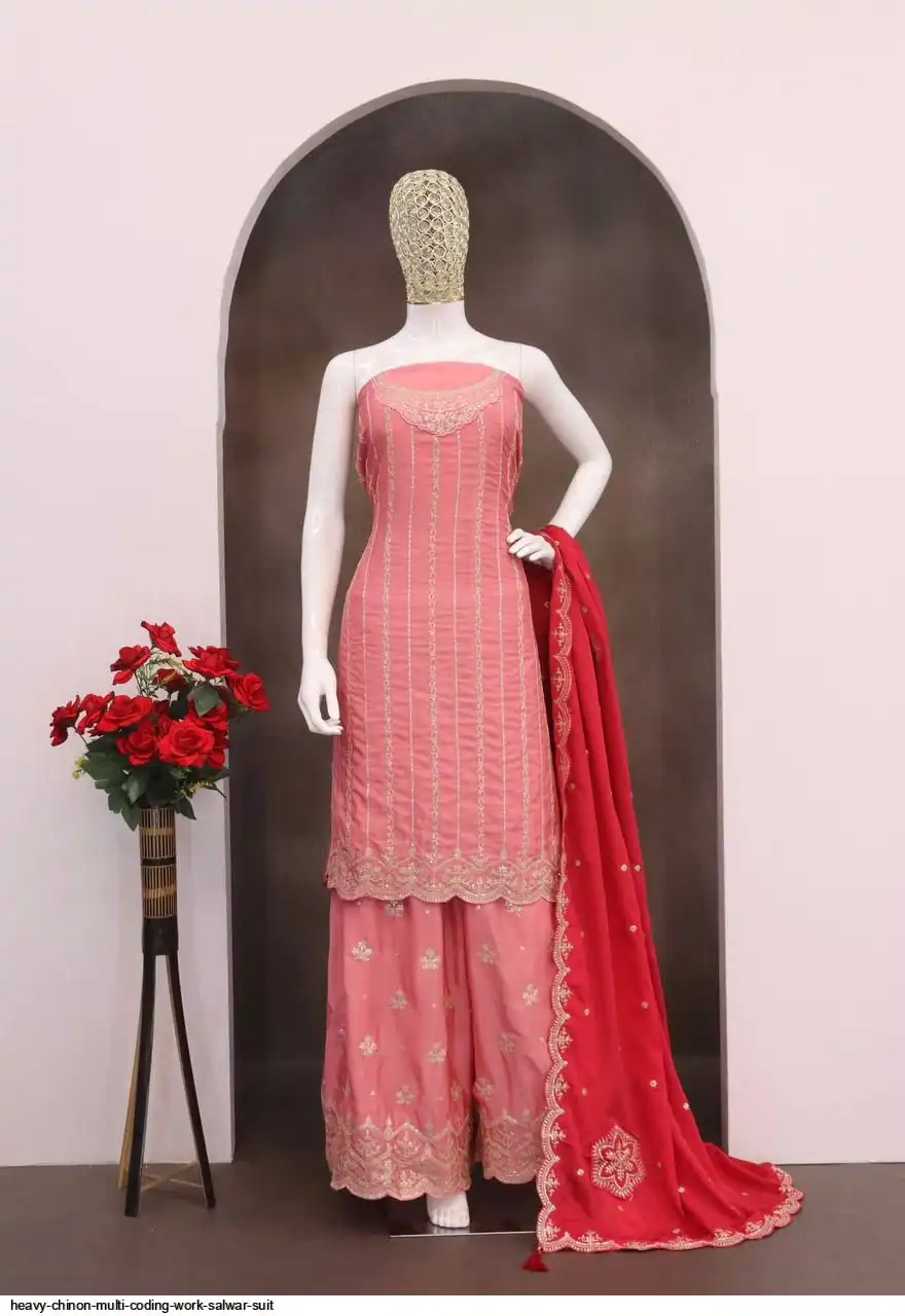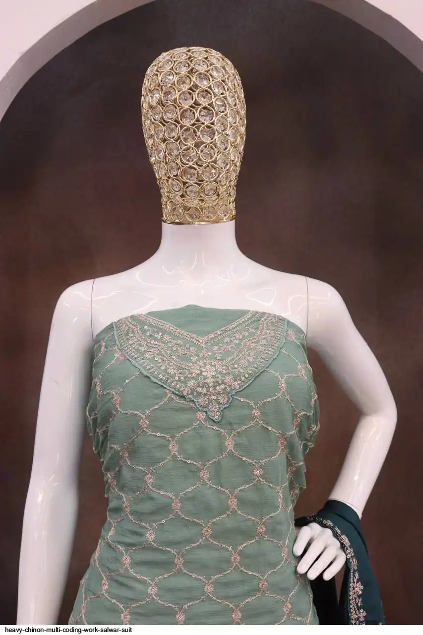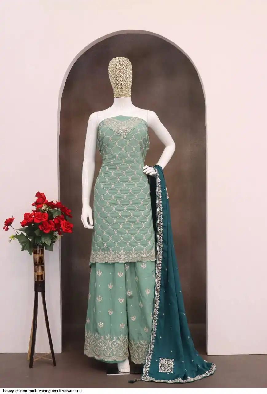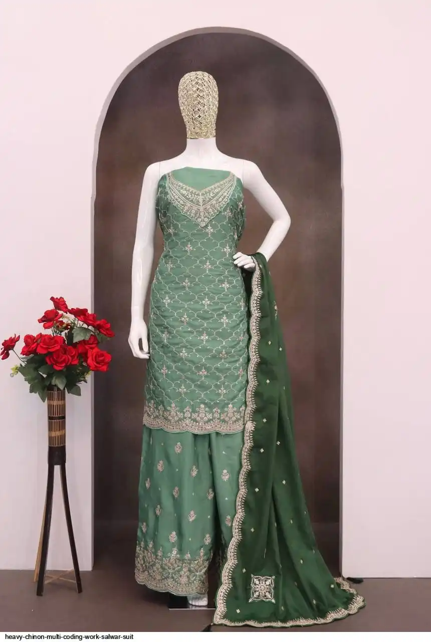 Sleeves :- Heavy chinon & Emb multi Coding work