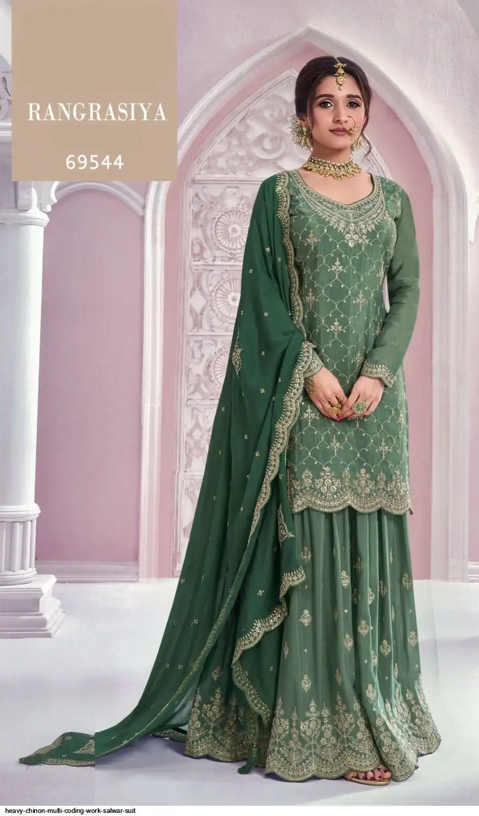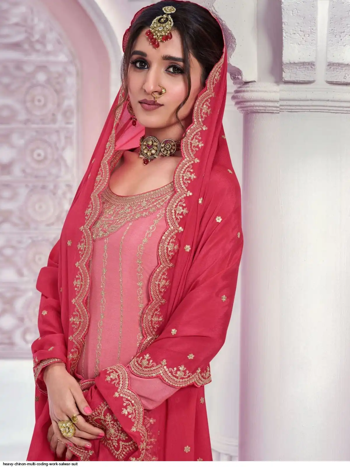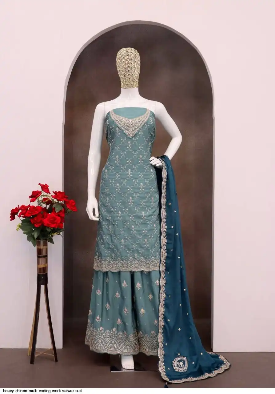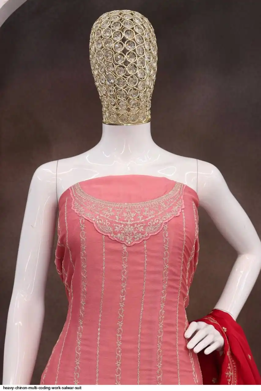 Sleeves :- Heavy chinon & Emb multi Coding work