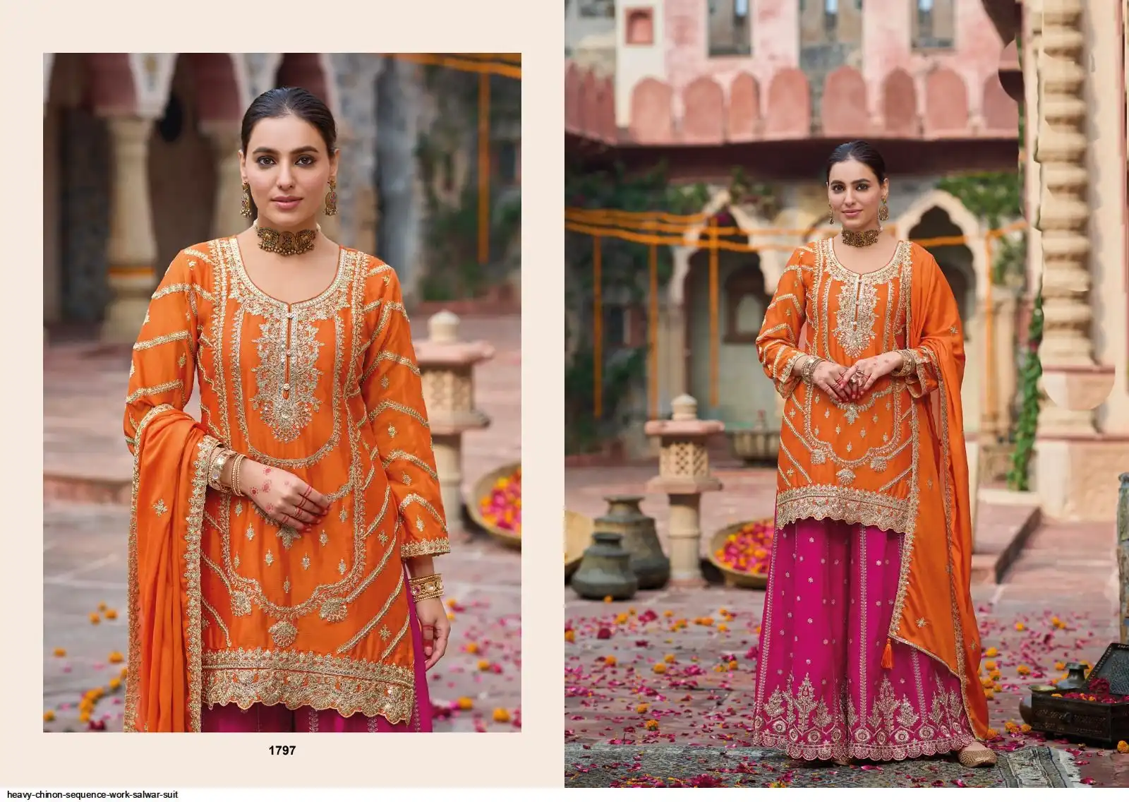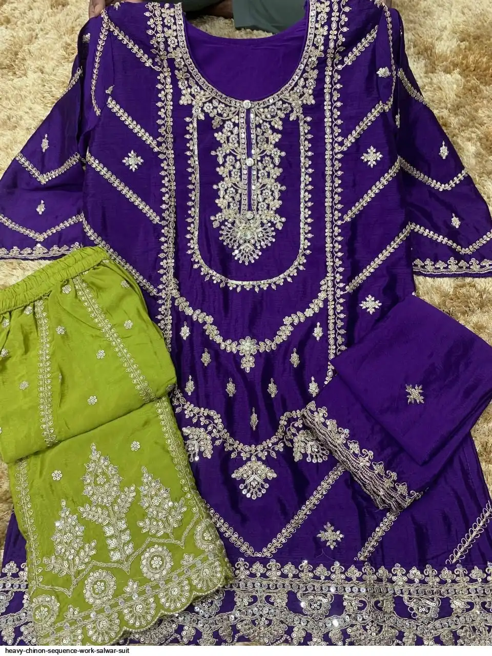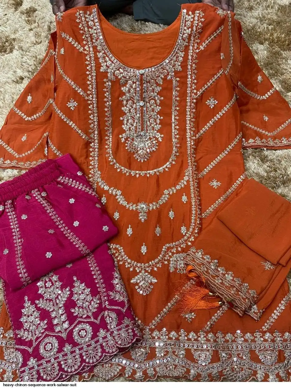 BOTTOM :- Heavy Chinon with Embroidery & 5mm Mat Squence work