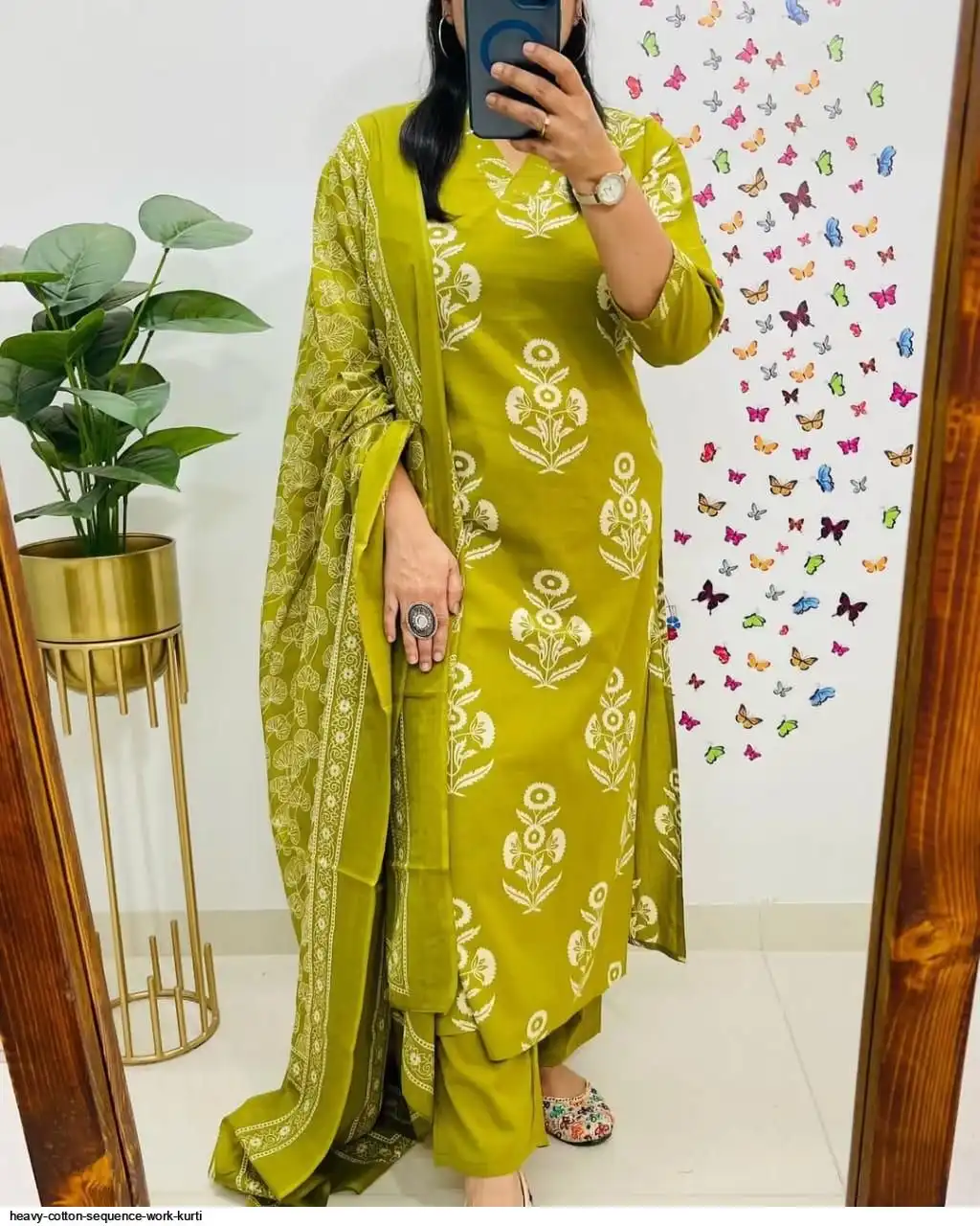 Pure fine Cotton fabric Kurti with Pant with cotton 100-100 Dupatta Heavy sequence Embroidery work on yoke and Bazu