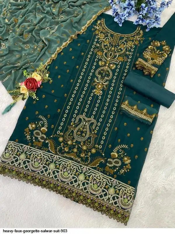 Top :- Heavy Faux Georgette with Embroidered 3mm Sequence work