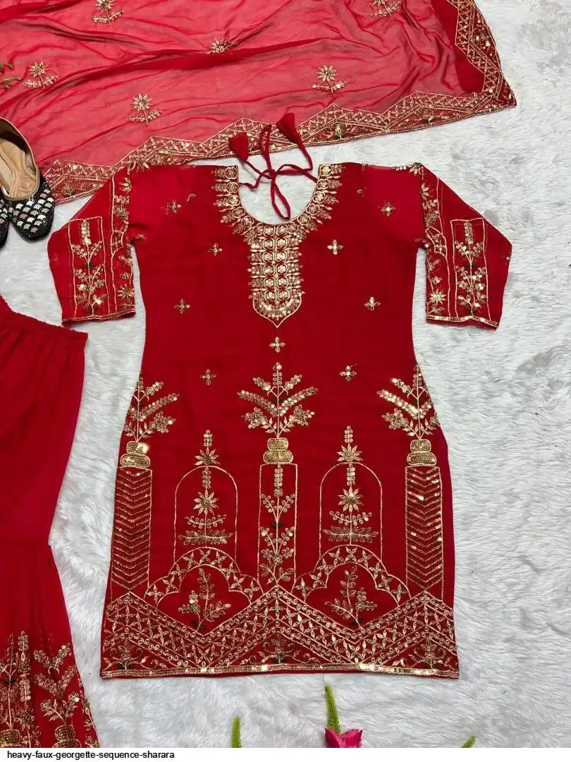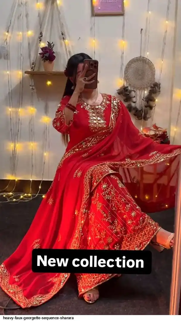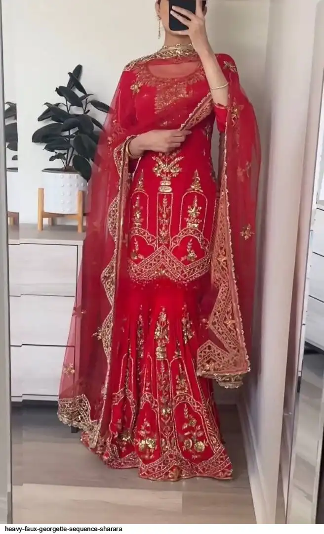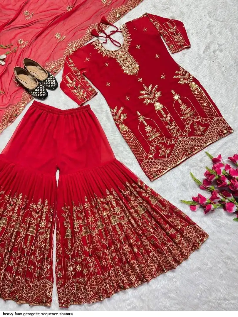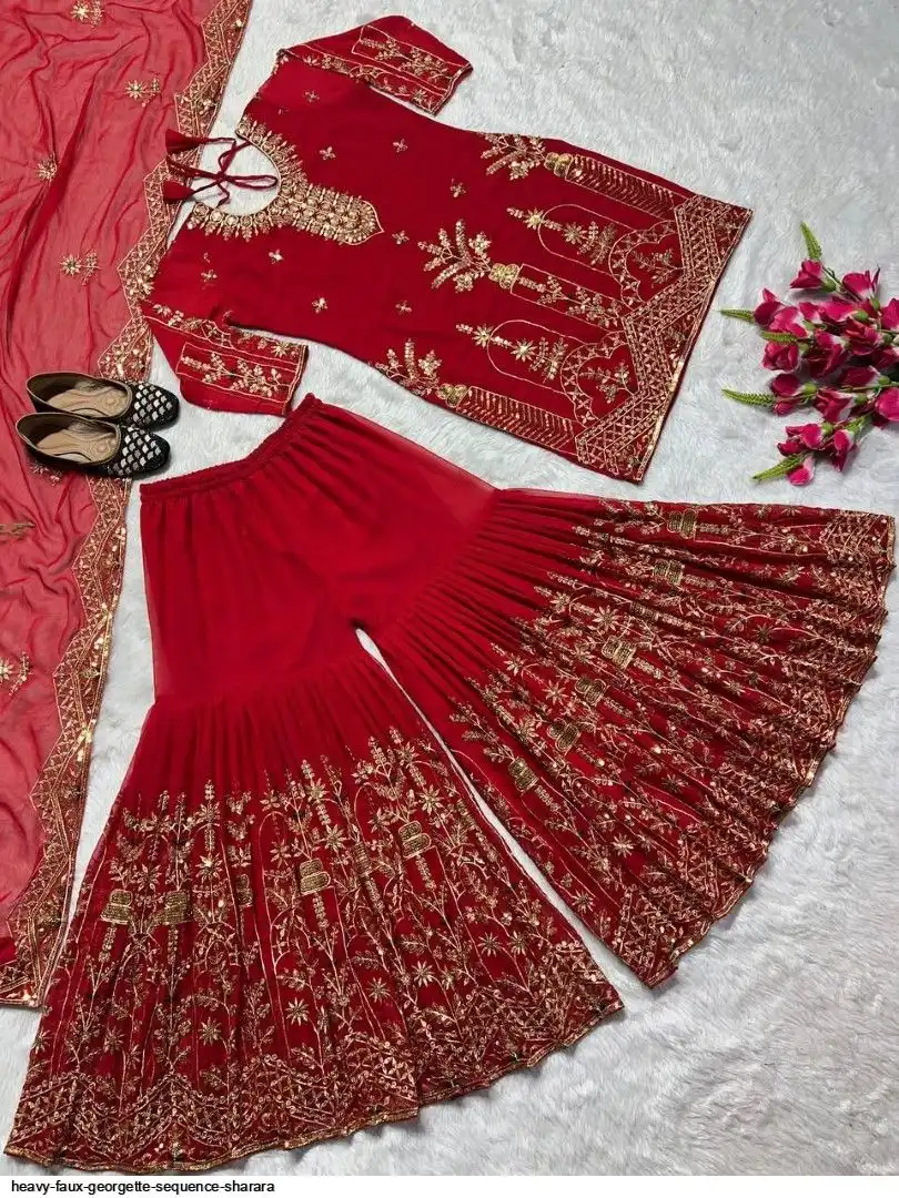 Sharara Palazzo : Heavy Faux Georgette Material With 5mm Sequence Embroidery Work.