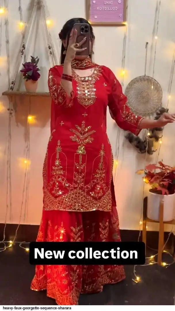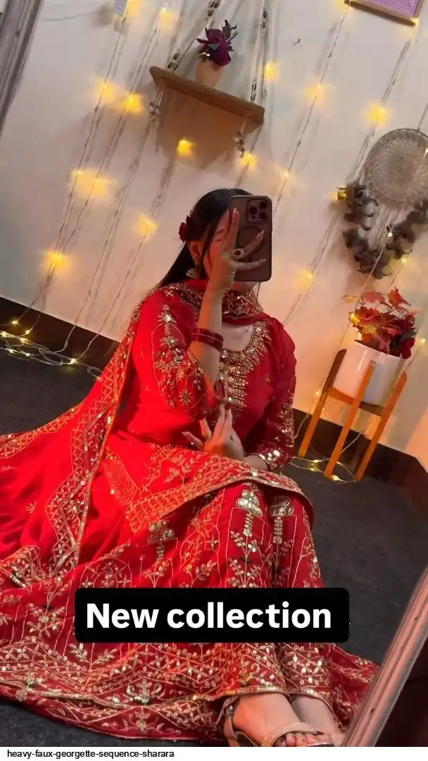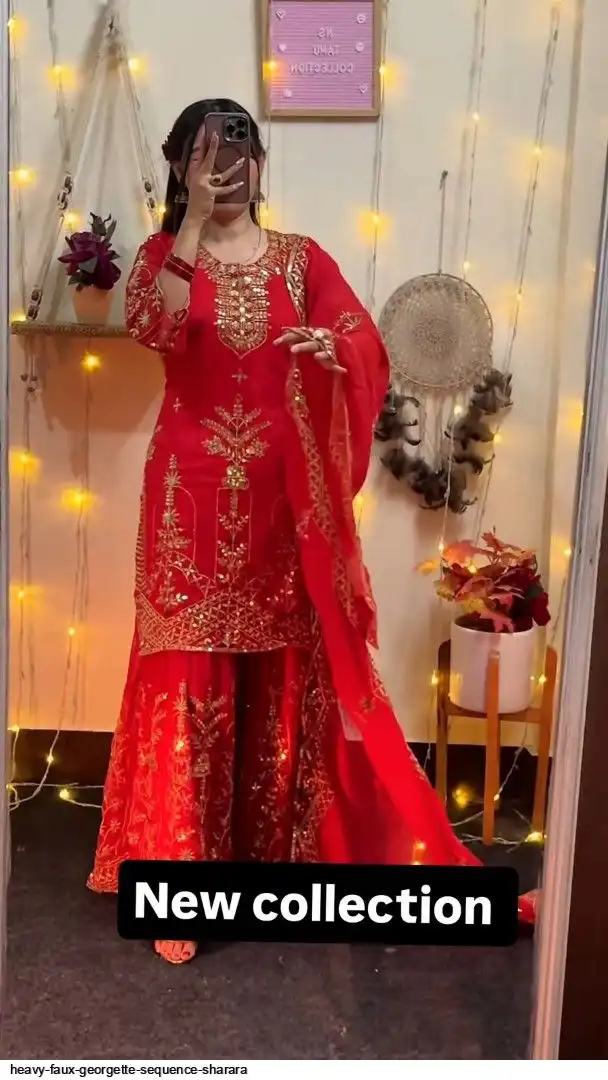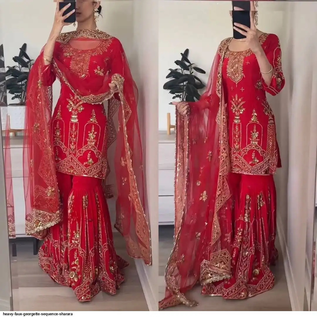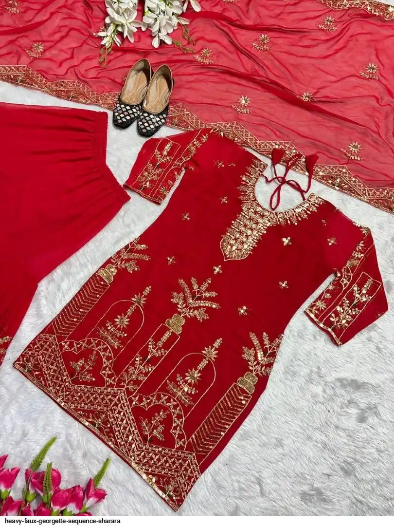 Sharara Palazzo : Heavy Faux Georgette Material With 5mm Sequence Embroidery Work.