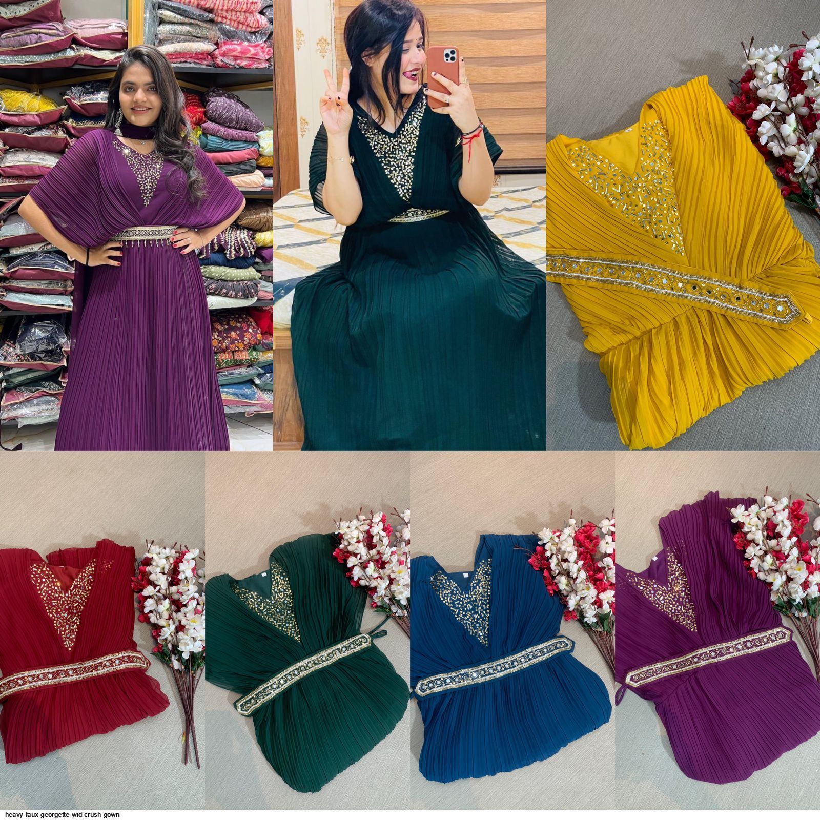 Fabric. :- HEAVY faux Georgette WID CRUSH