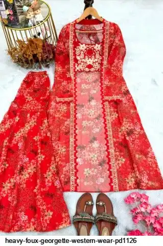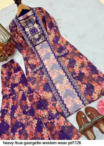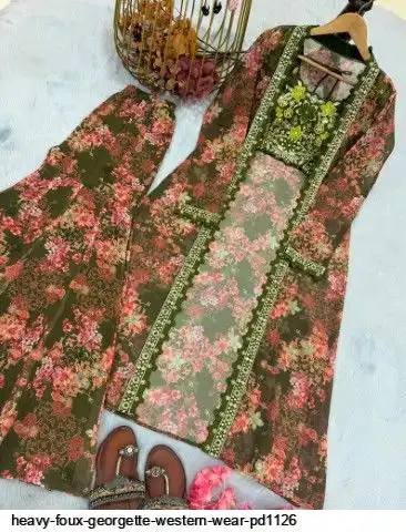Koti Fabric :Heavy Foux Georgette With Beautiful Floral Digital Print With Embroidery 5 mm Sequence Work With Full Sleeves