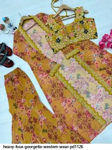 Sharara Plazzo Fabric:Heavy Foux Georgette With Beautiful Floral Digital Print With Elastic