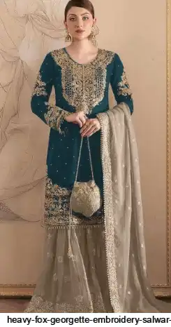 Plazzo :- Heavy Fox Georgette With Embroidery Codding Sequence Work (2 Mtr)