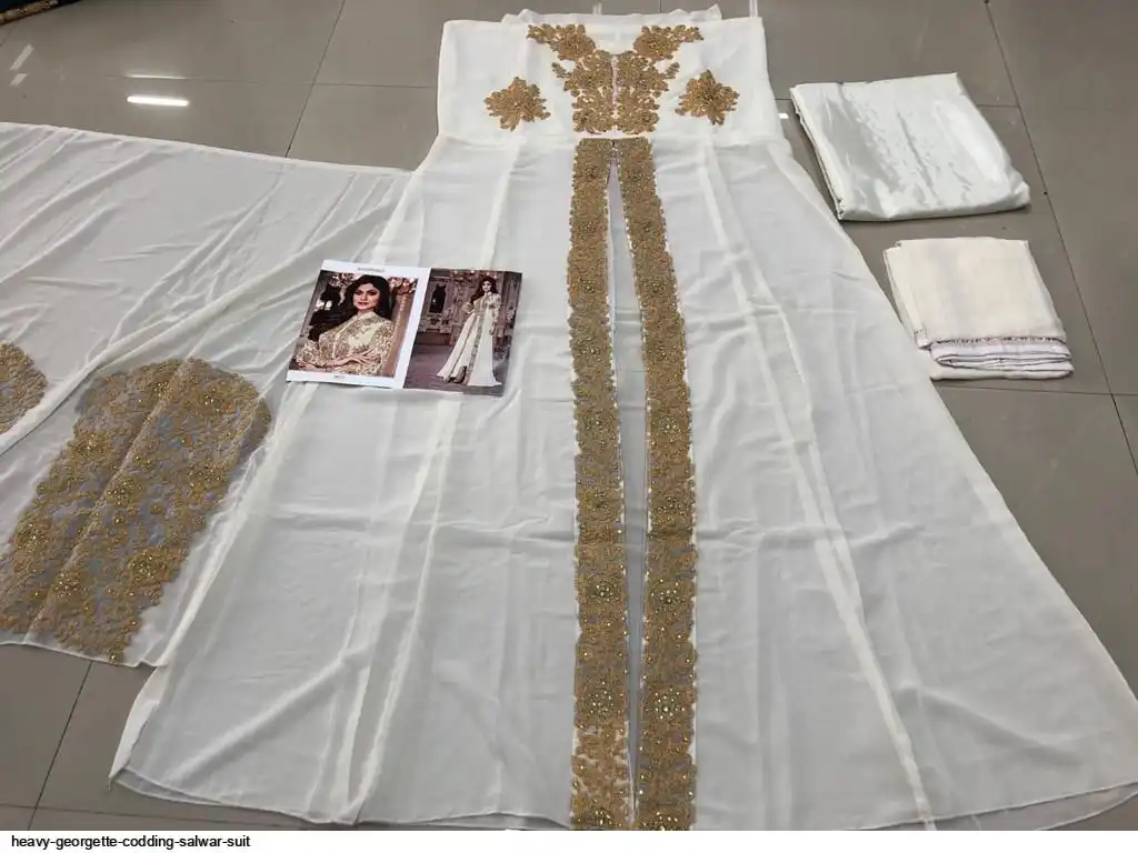 Top: - Heavy Fox Georgette + Codding Embroidery work