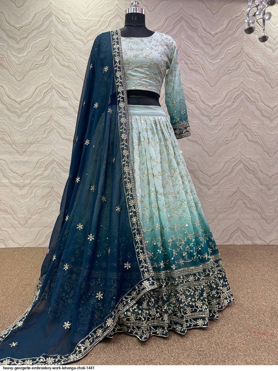 DUPATTA FABRIC : HEAVY FAUX GEORGETTE WITH EMBROIDERY 5mm SEQUENCE WORK WITH LACE BORDER