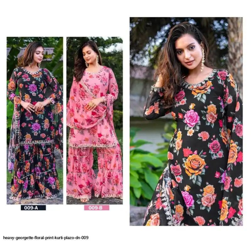 PLAZO:- Heavy Georgette With Embroidery Work & Floral Print