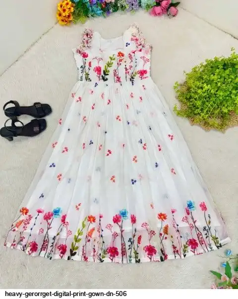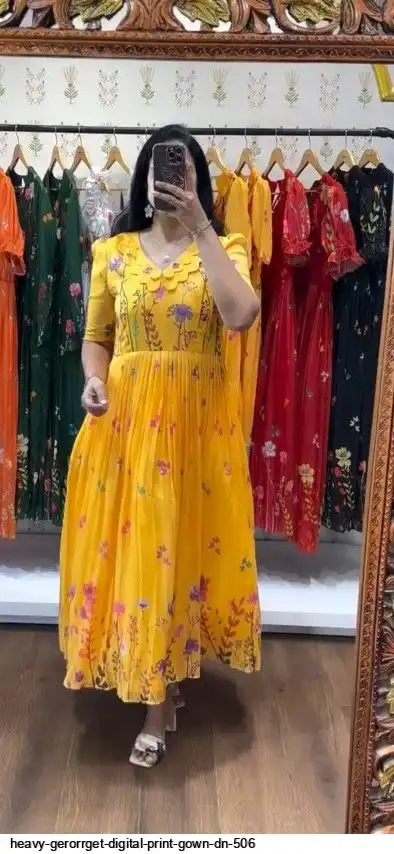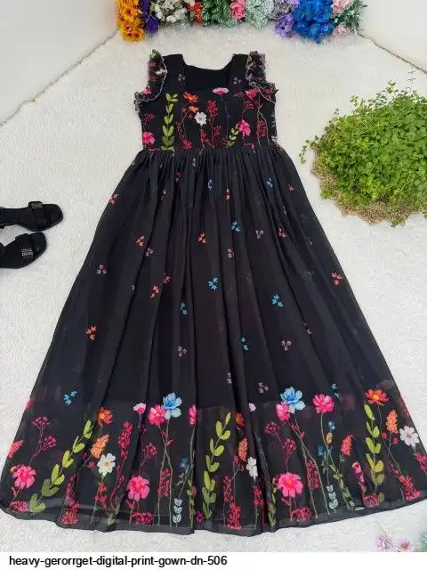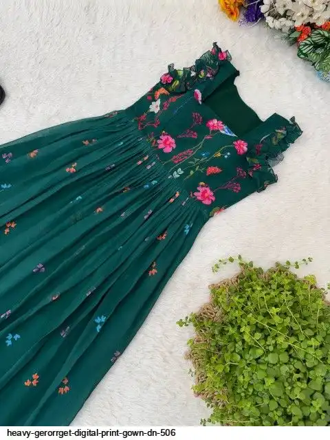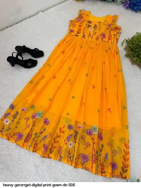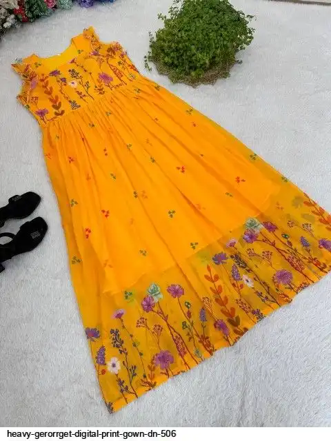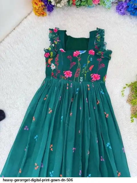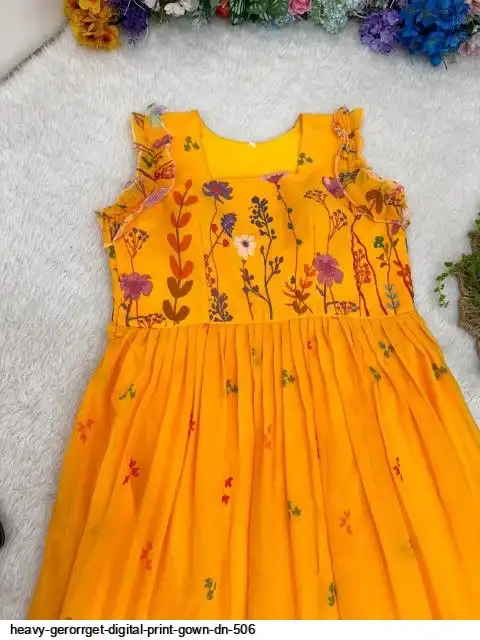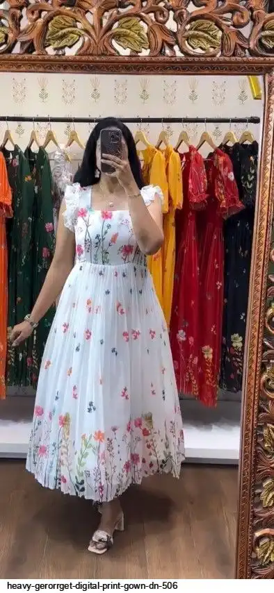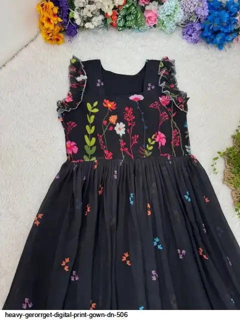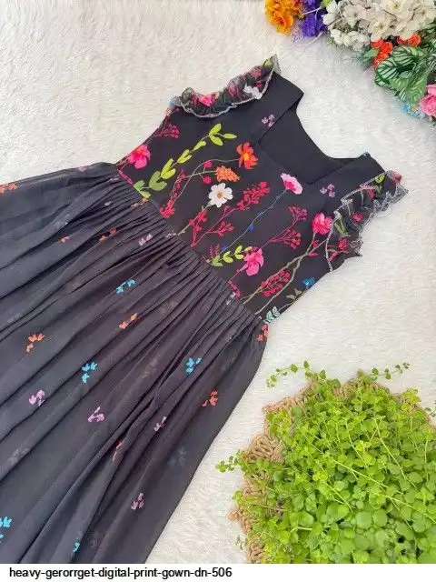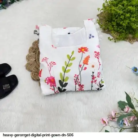 HEVAY GERORRGET WITH DIGITAL PRINT / CREAP LINING AND AND SORT SLEEVE WITH ELASTIC PUFF PETTERN
