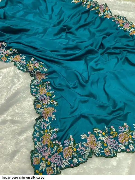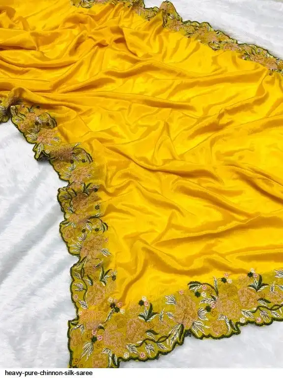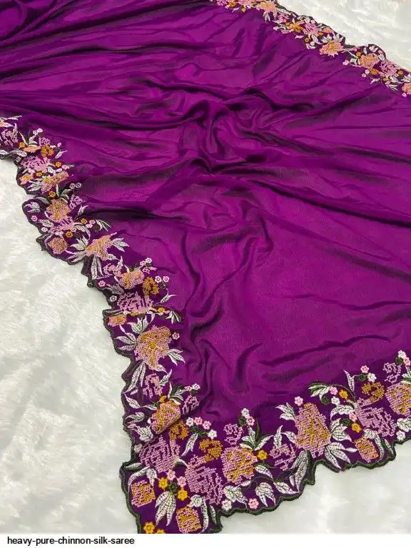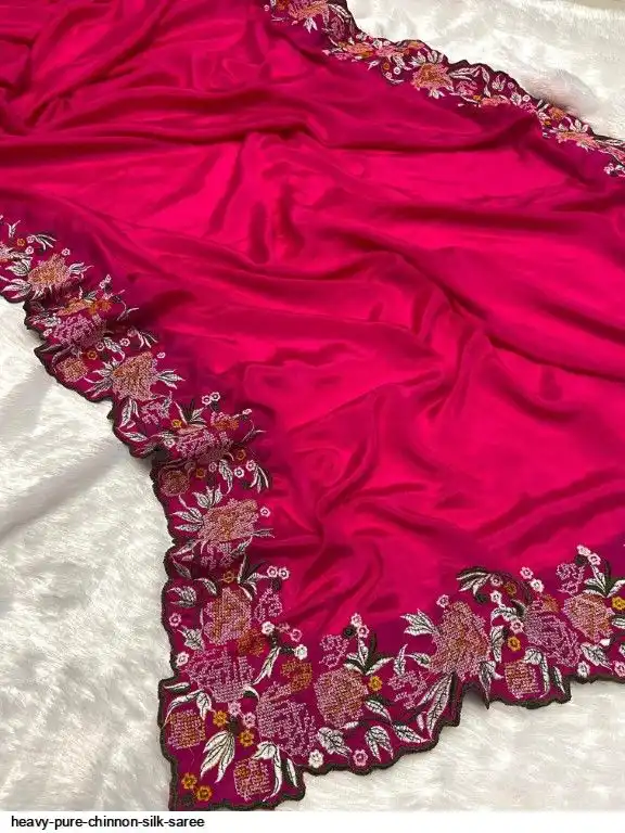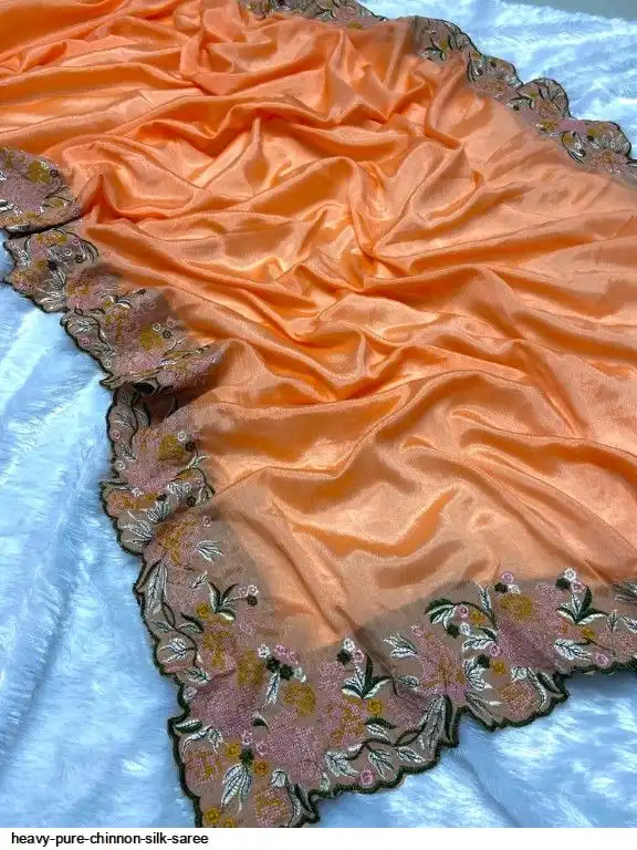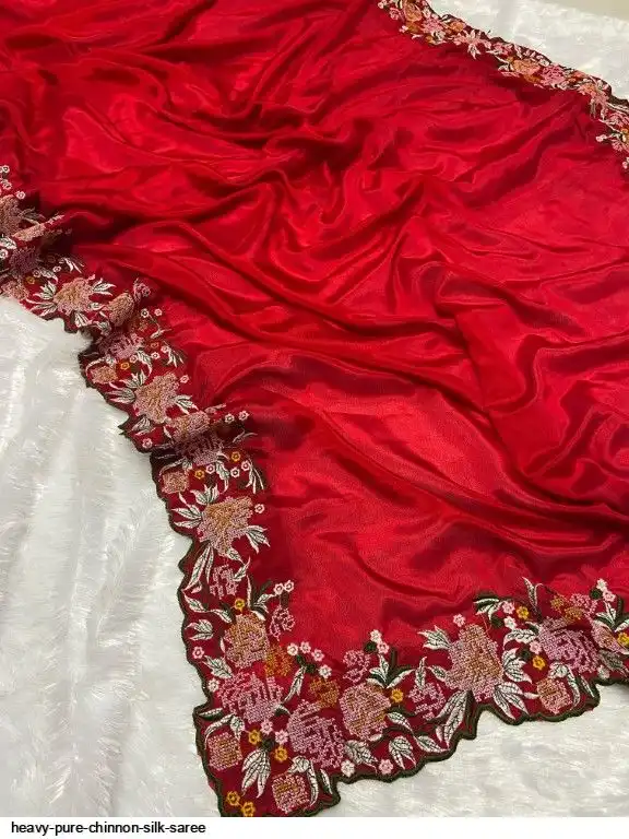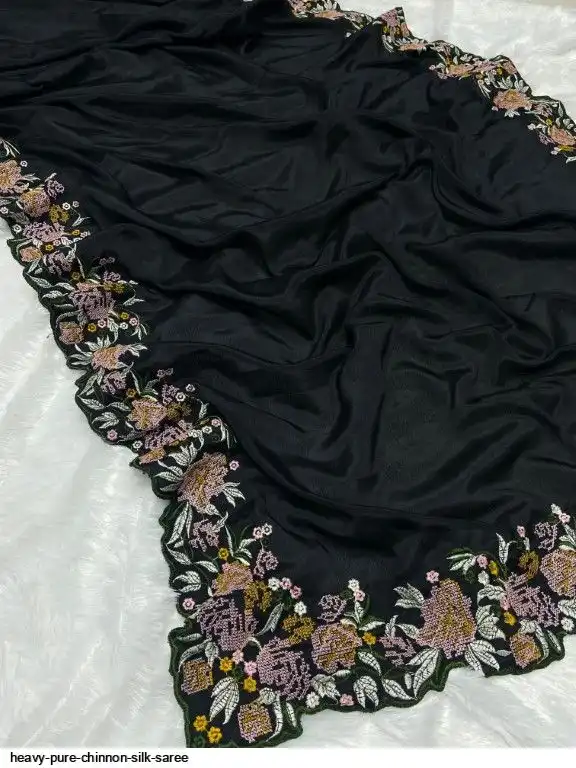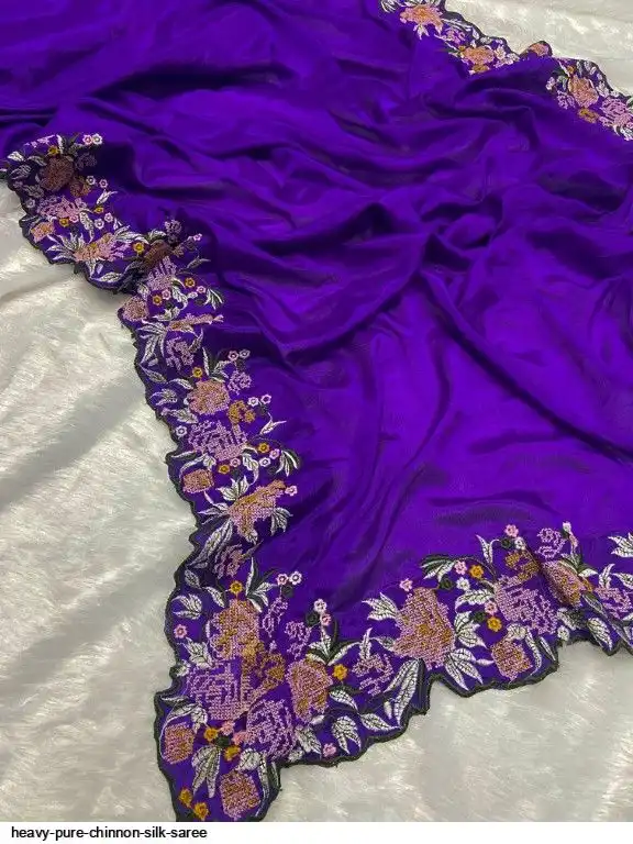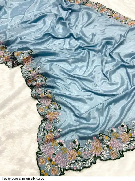 Pure chinon silk saree in a solid color with embroidery viscos thread work in saree Paired with running blouse of same color of saree with work border