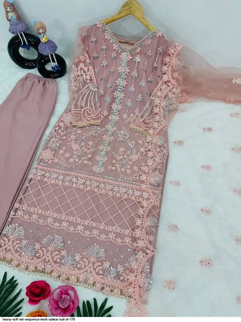#TOP SLEEVES :HEAVY CHINE SEQUENCE WITH PERAL HAND WORK FANCY LESS