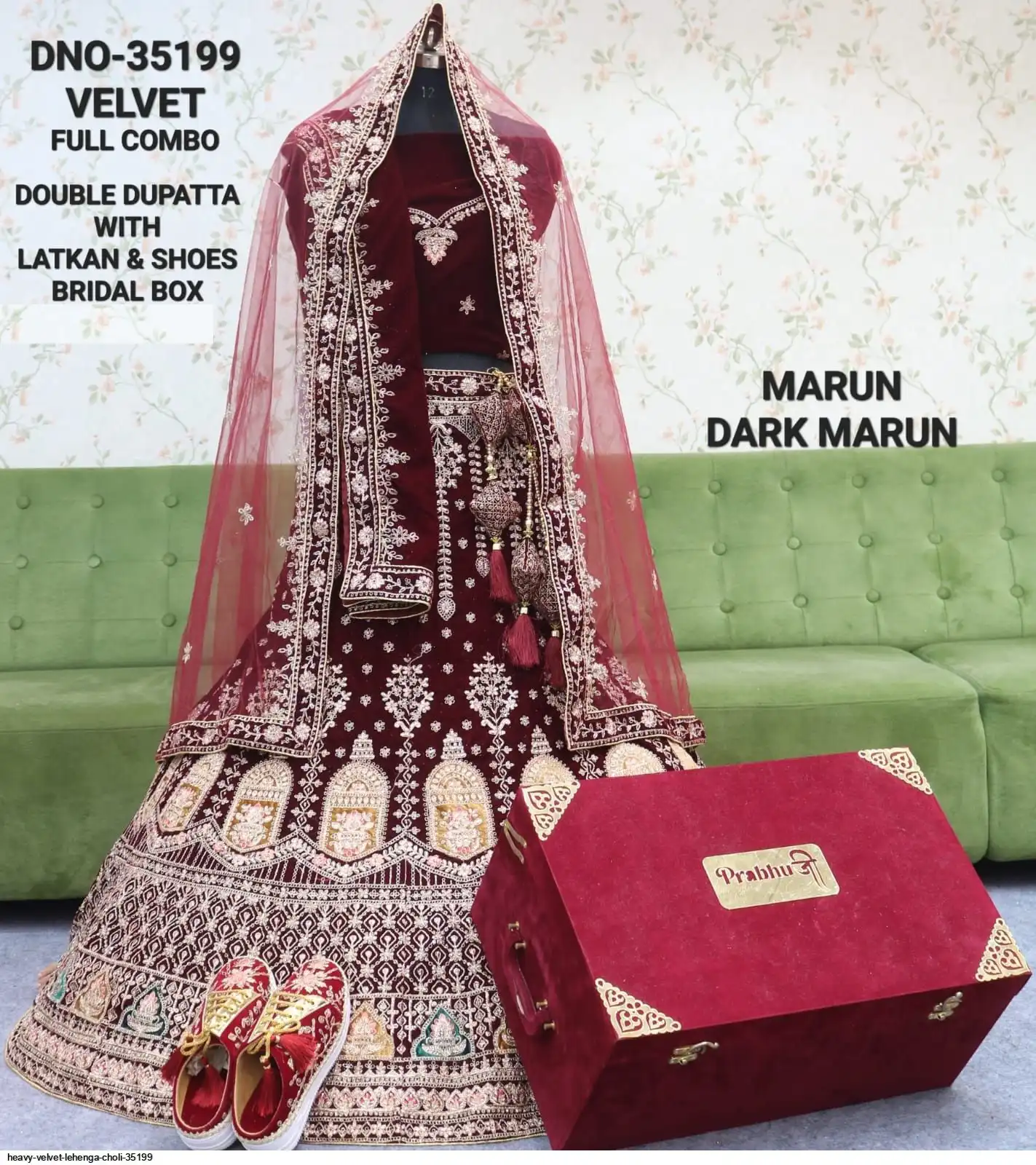 5 METER FLARE DOUBLE DUPATTA WTH LATKAN & SHOES BRIDAL BOX