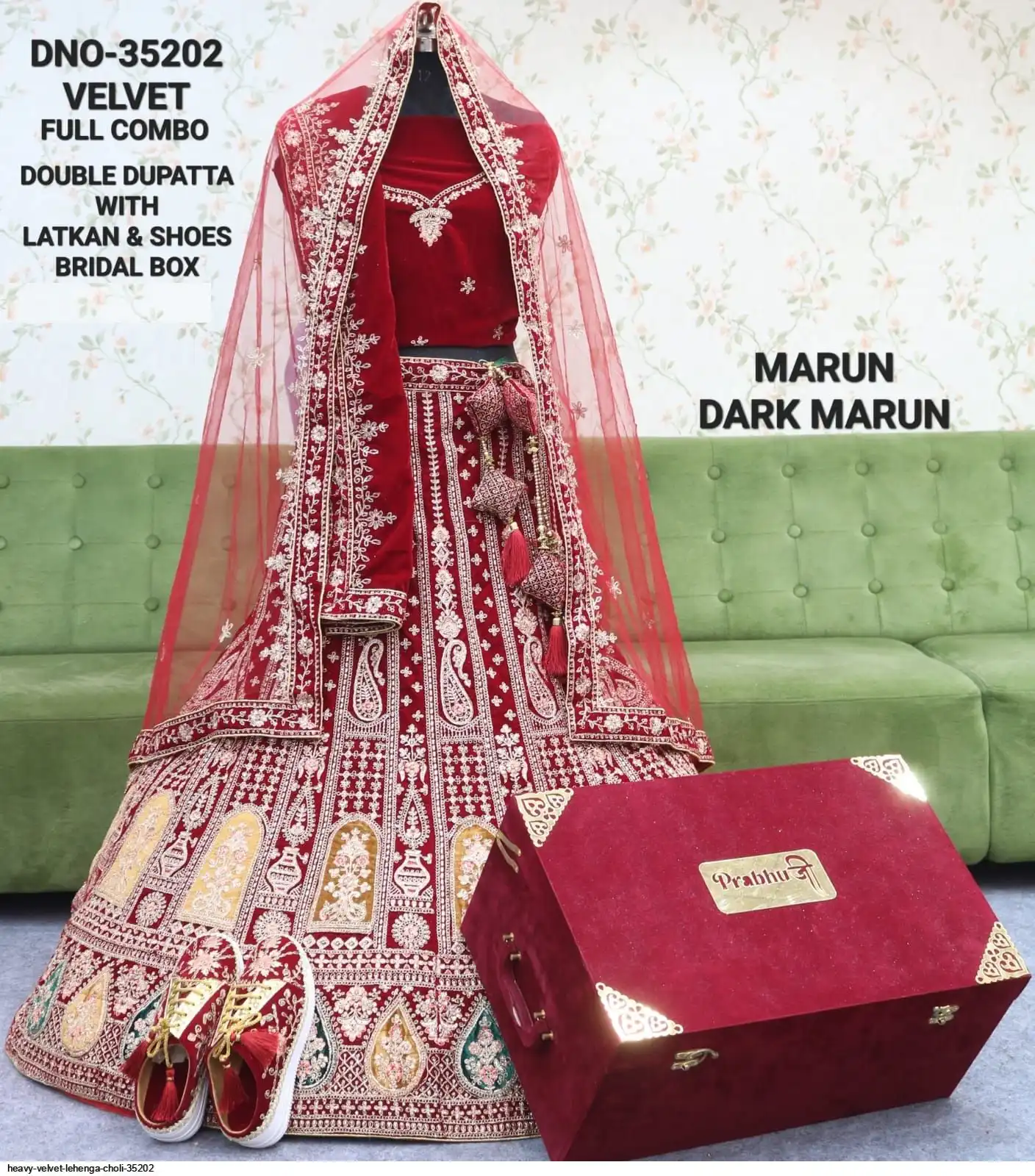 5 METER FLARE DOUBLE DUPATTA WTH LATKAN & SHOES BRIDAL BOX