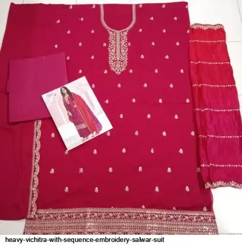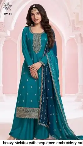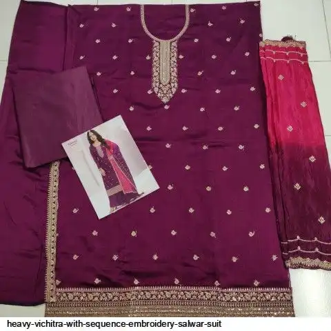 TOP :- Heavy Vichitra With Sequence Embroidery Stich Work