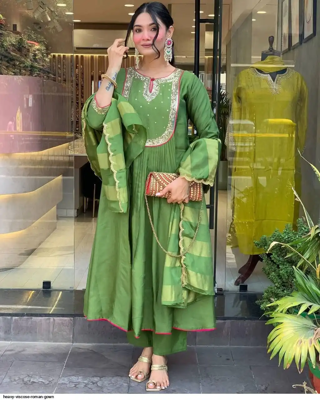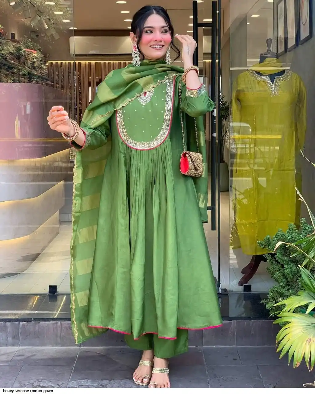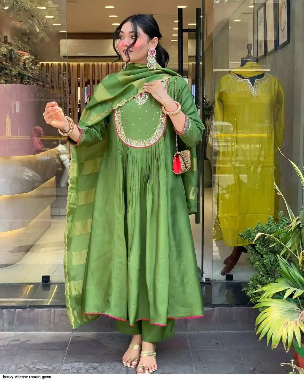 *Featuring beautiful Heavy Suit Set which is beautifully decorated with intricate hand embroidery, Zari weaving . It is paired with matching pants and FANCY CUTWORK EMBROIDERY Dupatta.*