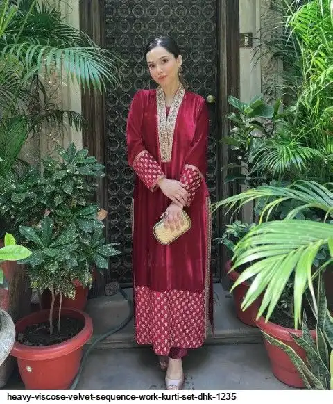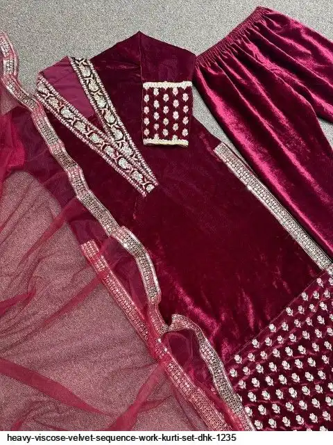 PRESERNTING NEW WINTER COLLECTION VELVET SUIT IN EMBROIDERY 5mm SEQUINS WORK LONG TOP-BOTTOM WITH DUPATTA
