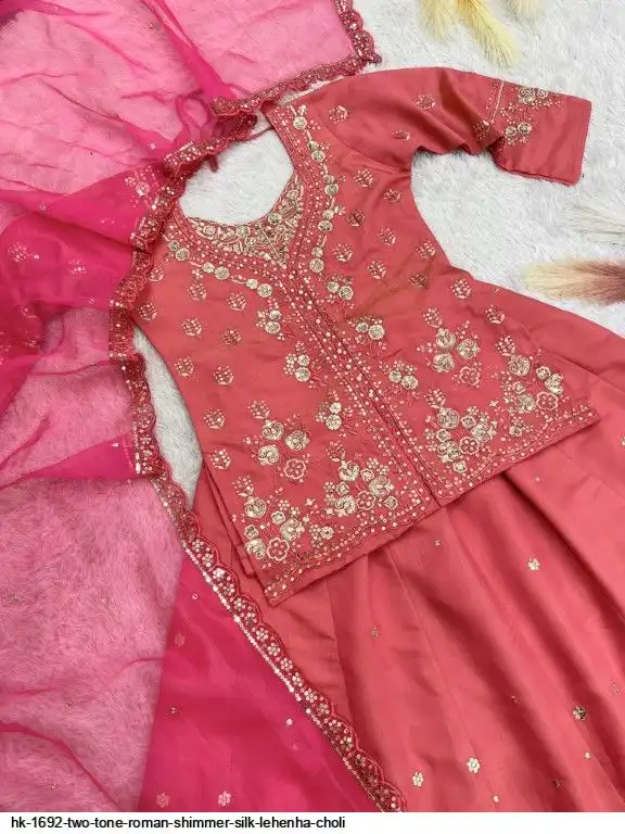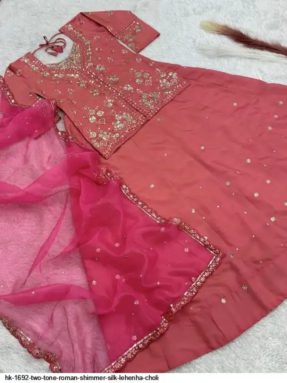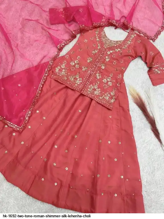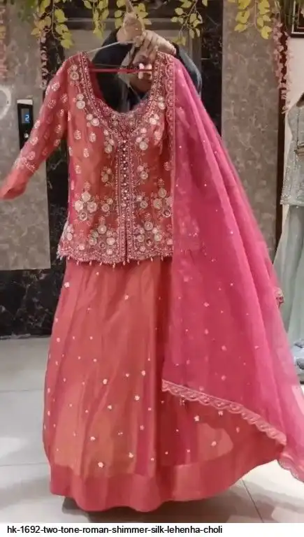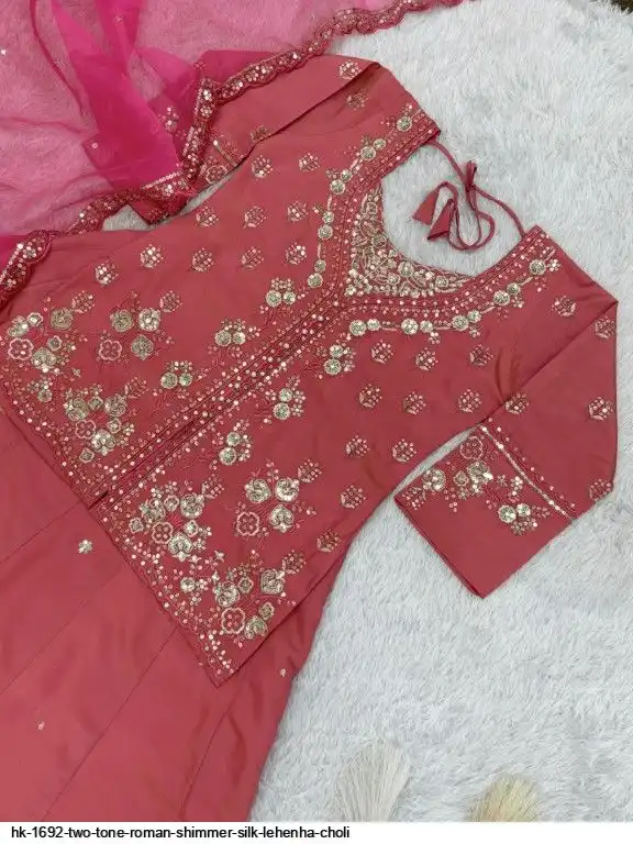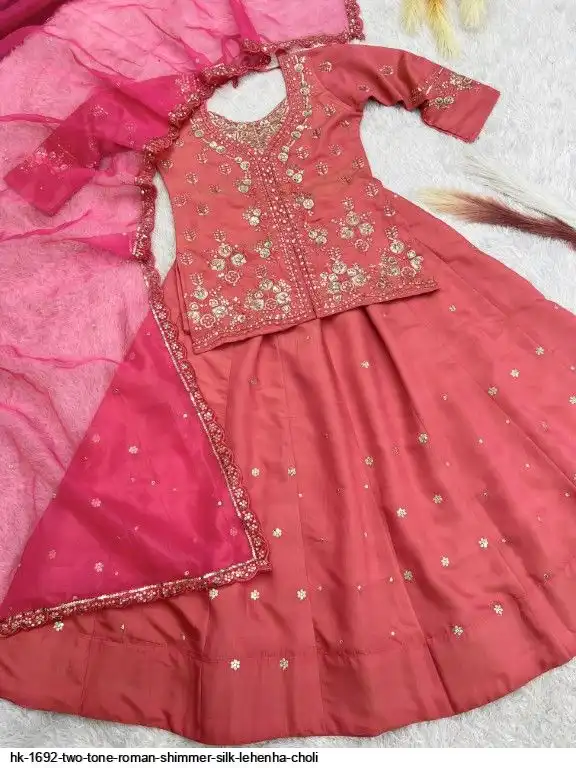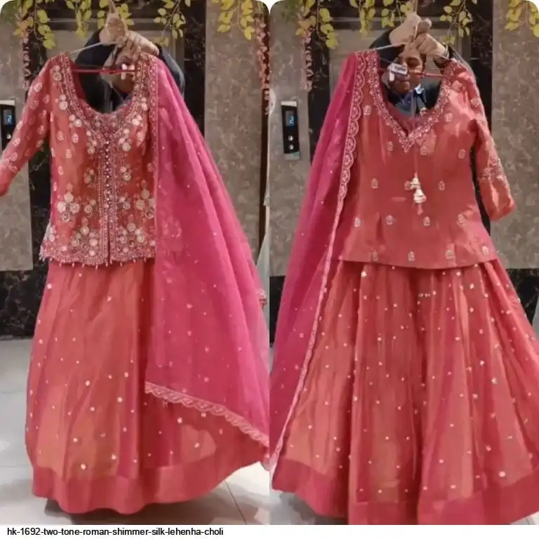 Lehenga Fabric : Heavy Two Tone Roman Shimmer Silk