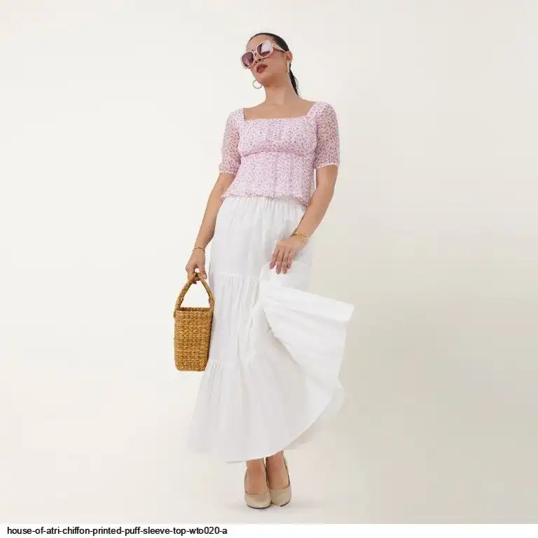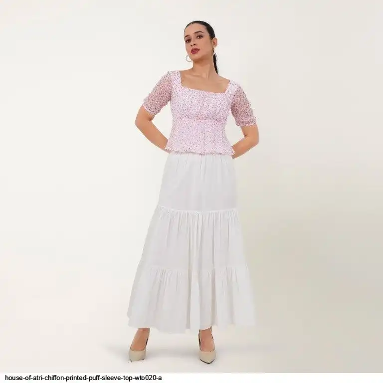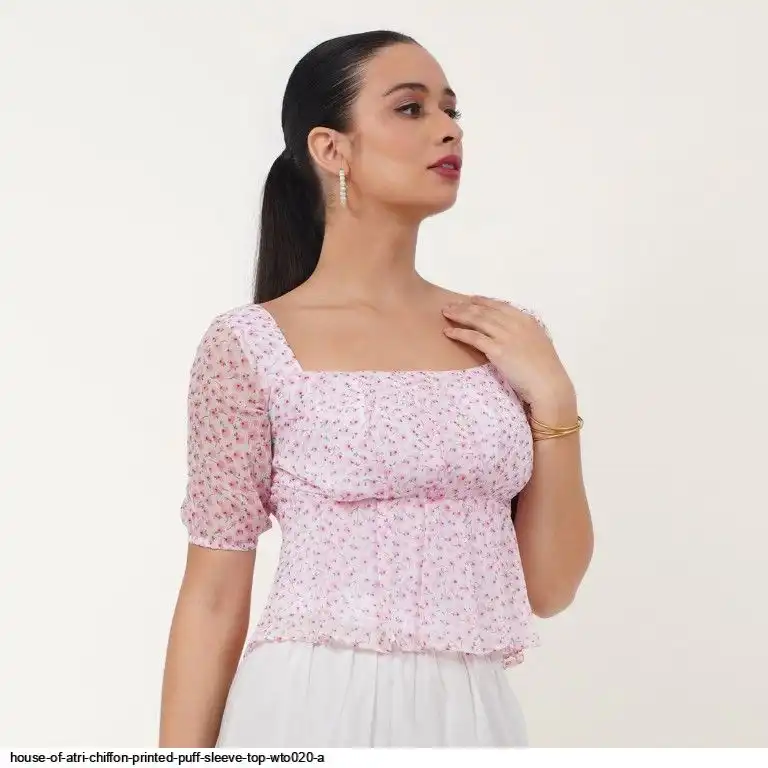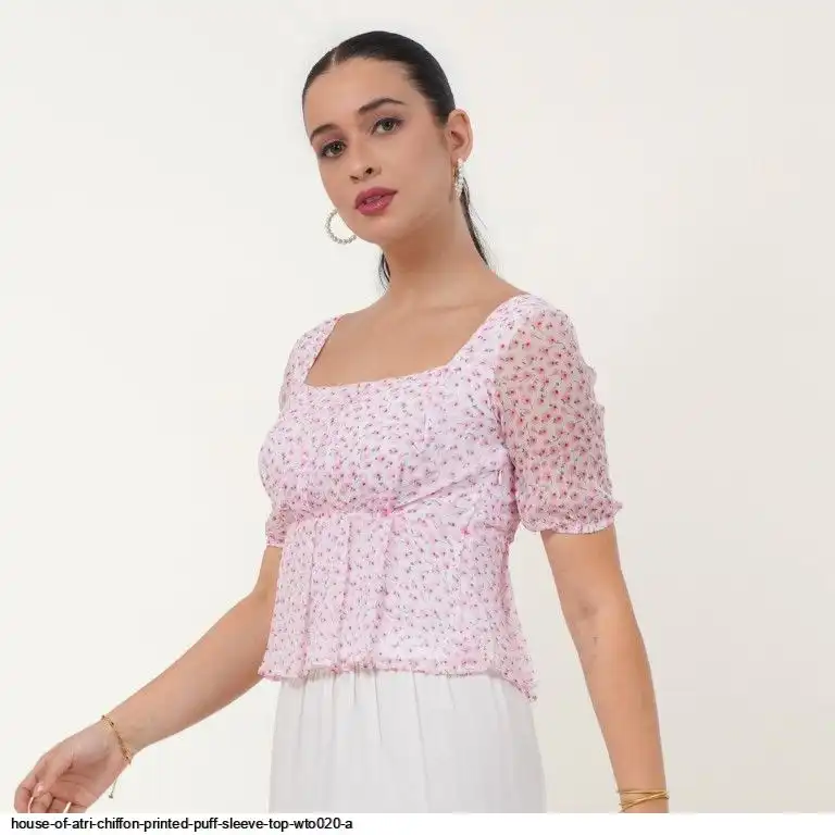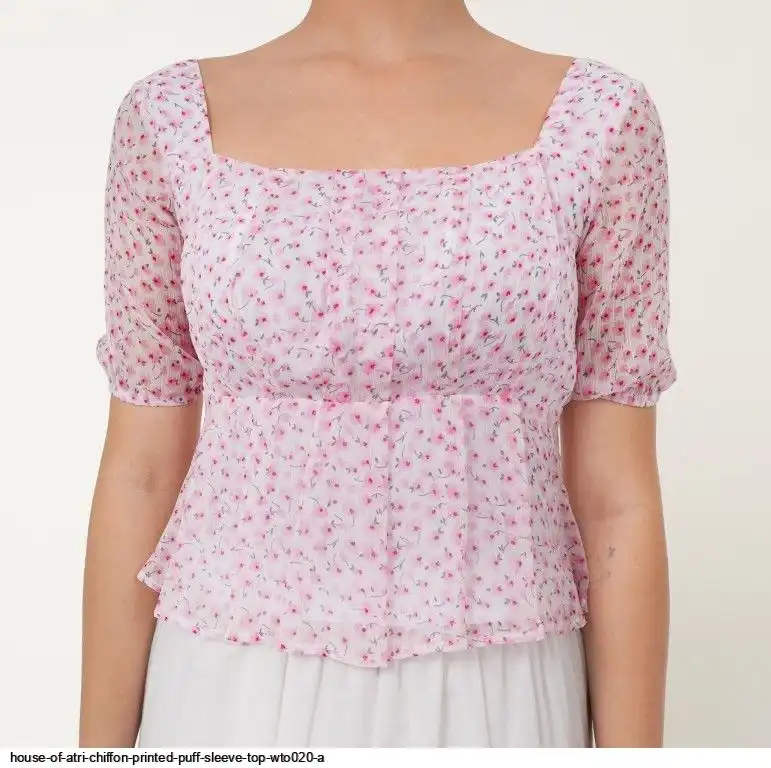 HOUSE OF ATRI CHIFFON PRINTED PUFF SLEEVE TOP WTO020 A