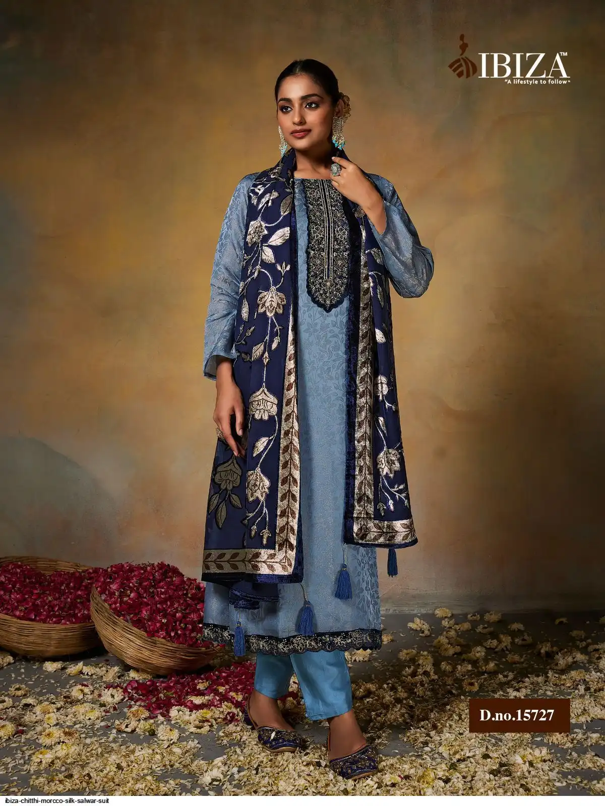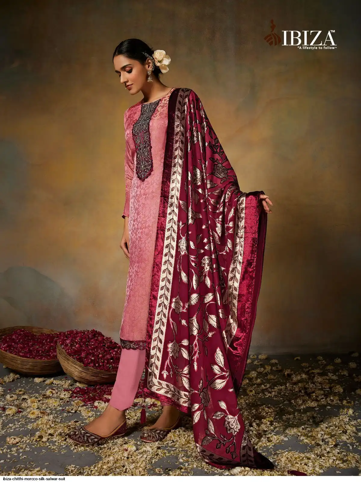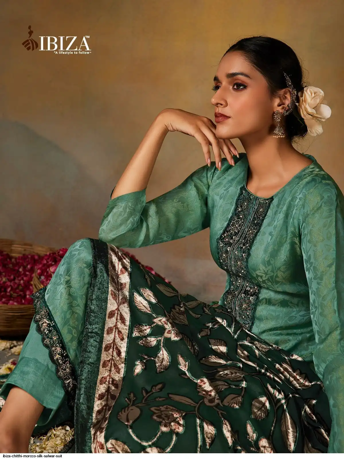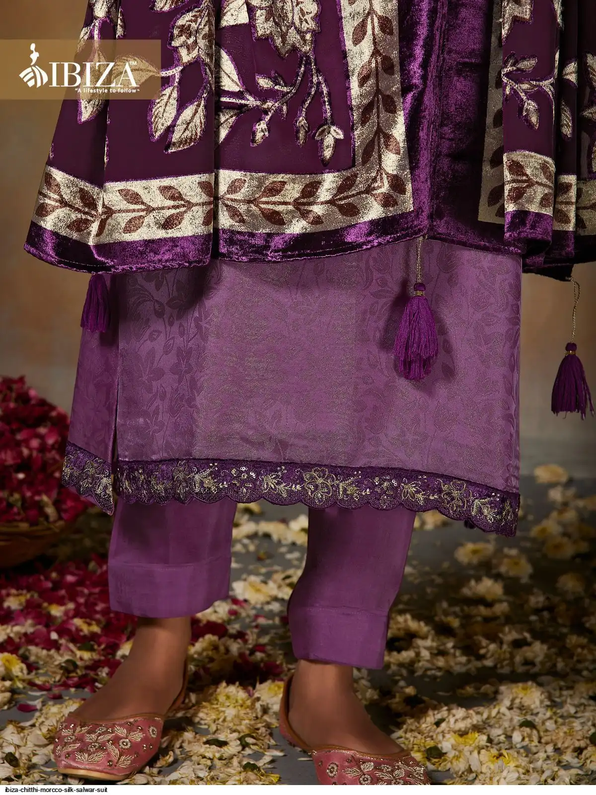 Top:-PURE MORCCO SILK JACQUARD WITH VELVET PACH WITH EMBROIDERY & HANDWORK