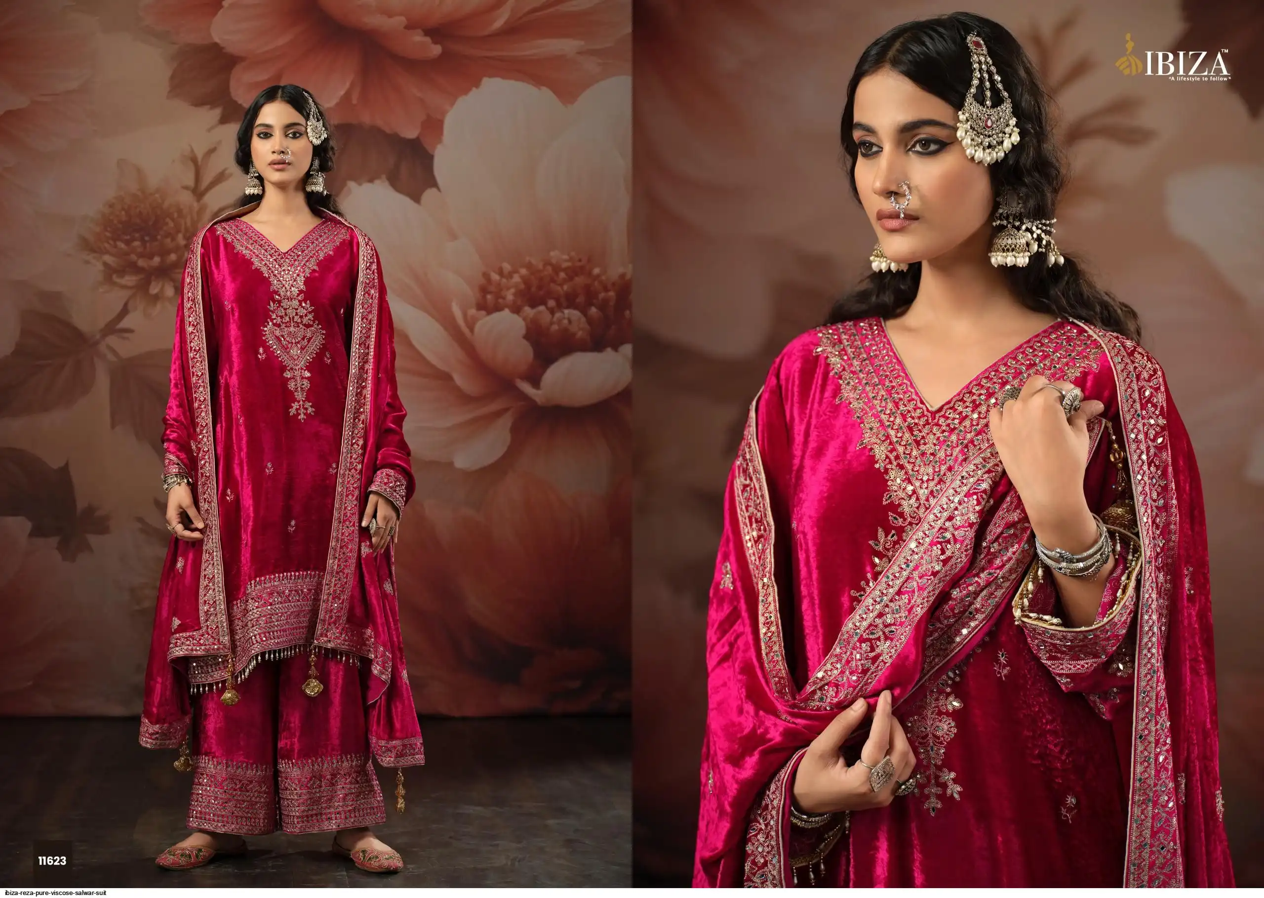 Top:-PURE VISCOSE VELVET FARONT & BACK CHAIN STITCH WORK & HANDWORK WITH LATKN LACE