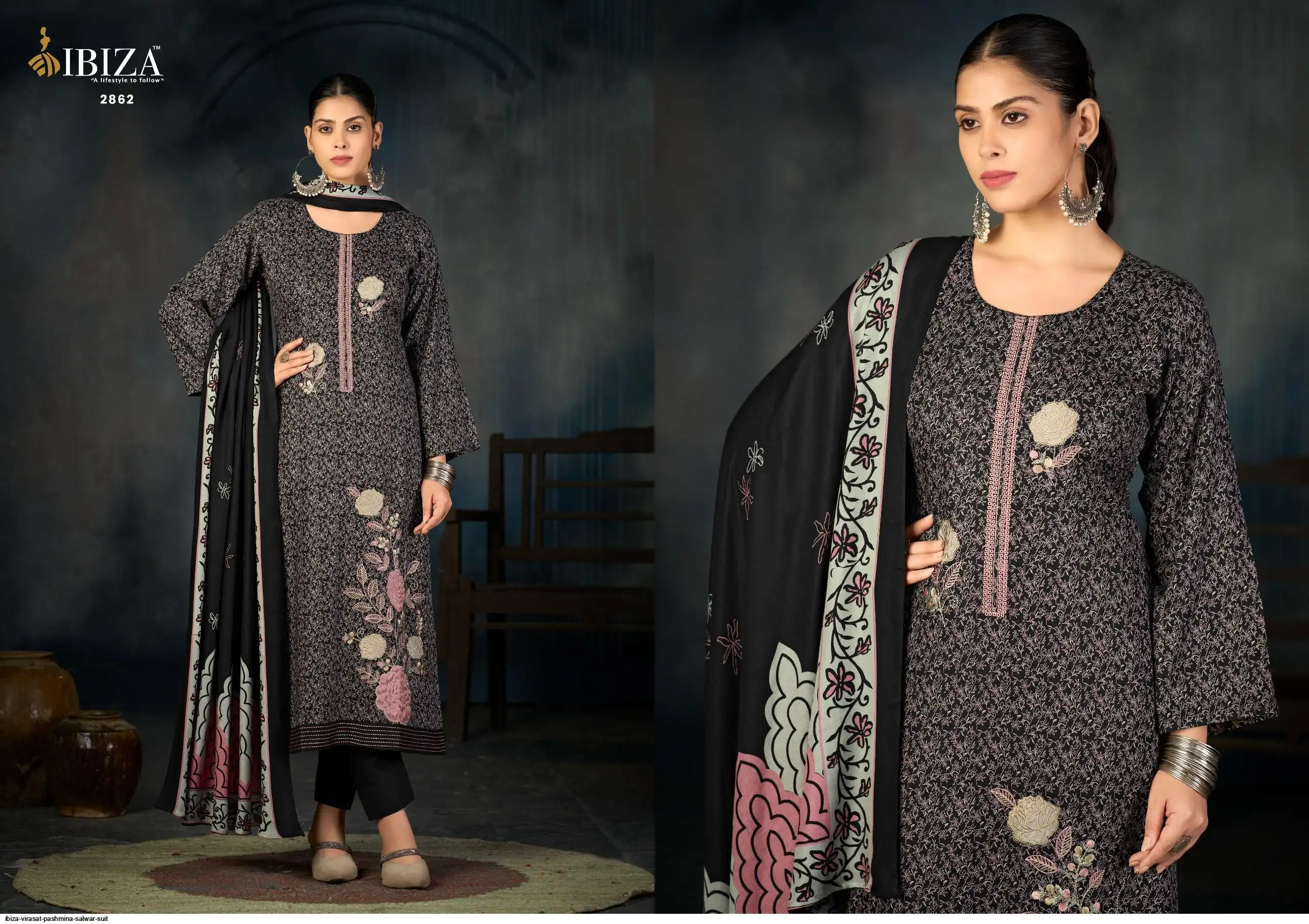 Top:-PURE VISCOUS PASHNINA DESINER APLIC & EMBROIDERED WORK &