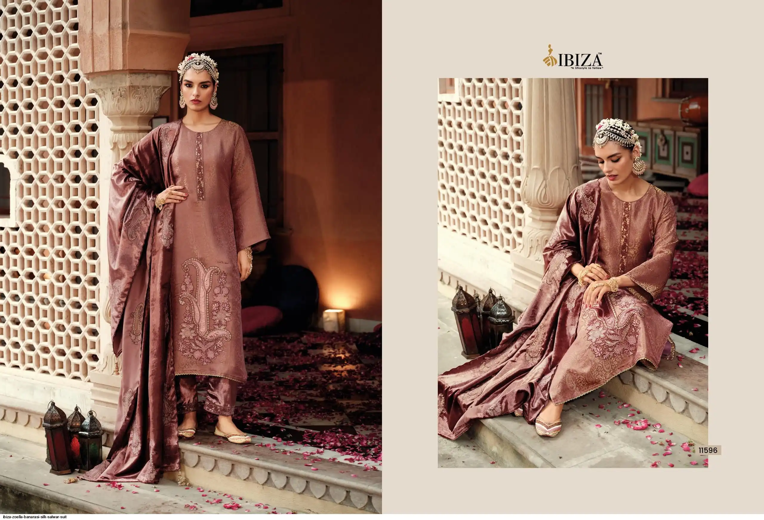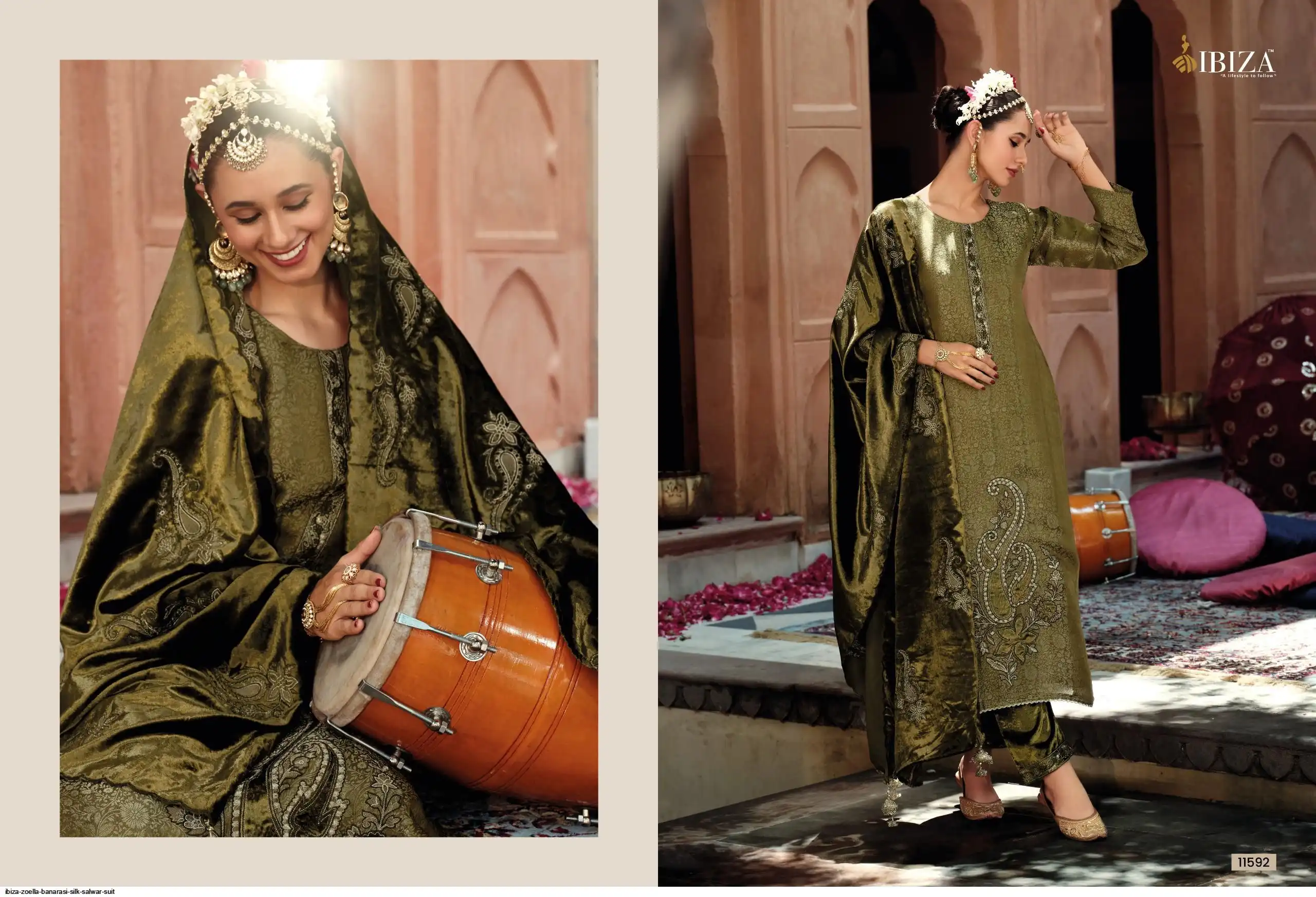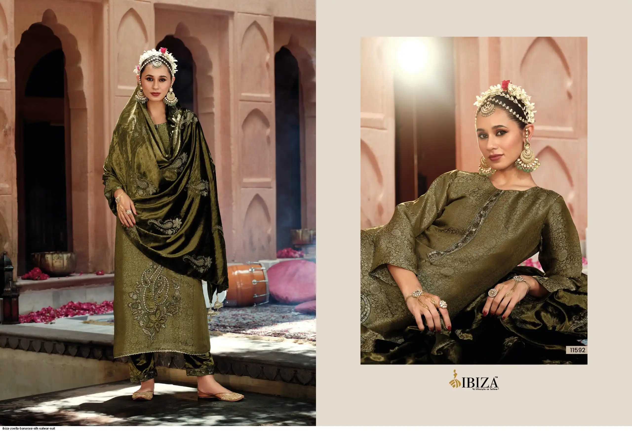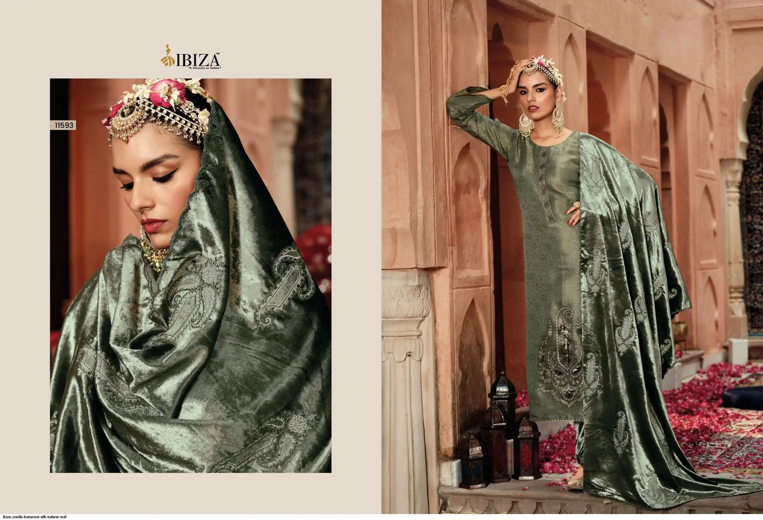 Top:-PURE BANARASI SILK SATIN SIMAR JACQUARD WITH NACK & DAMAN EMBROIDERY VELVET PACH WORK
