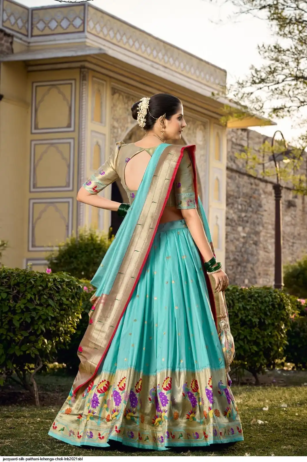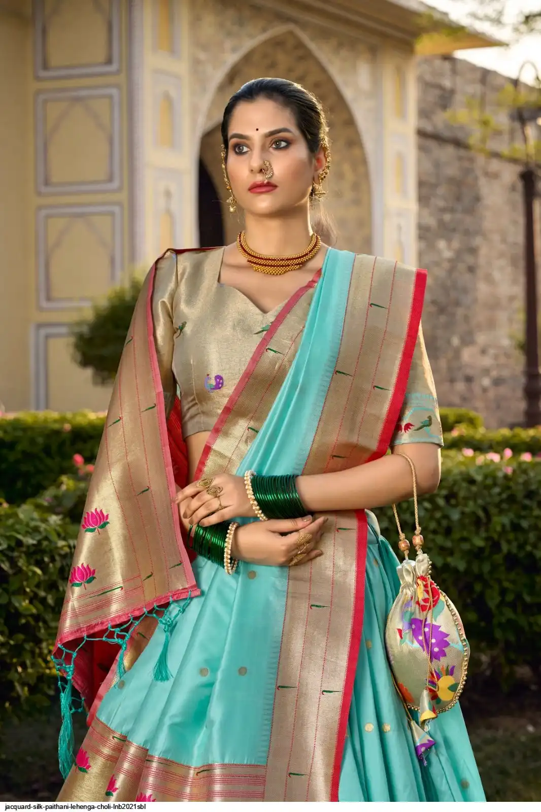 Captivate hearts and turn heads in our Jacquard Silk Paithani Lehenga Choli - where every detail reflects the essence of tradition