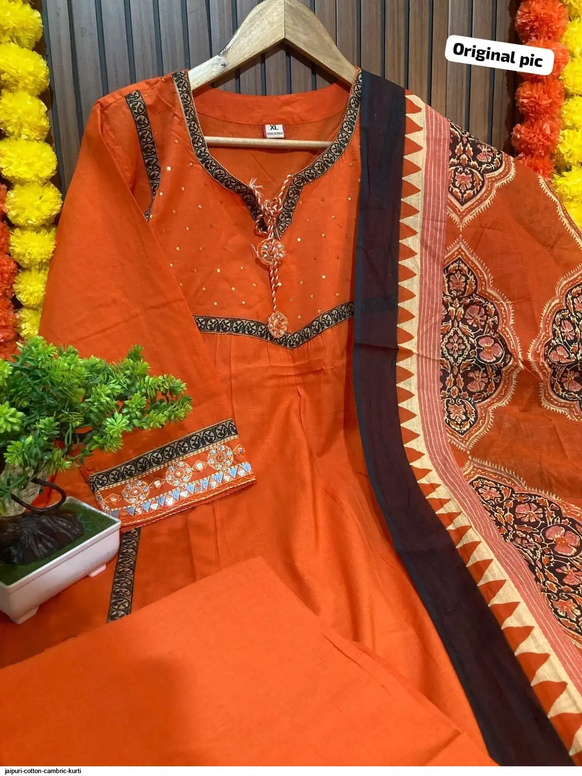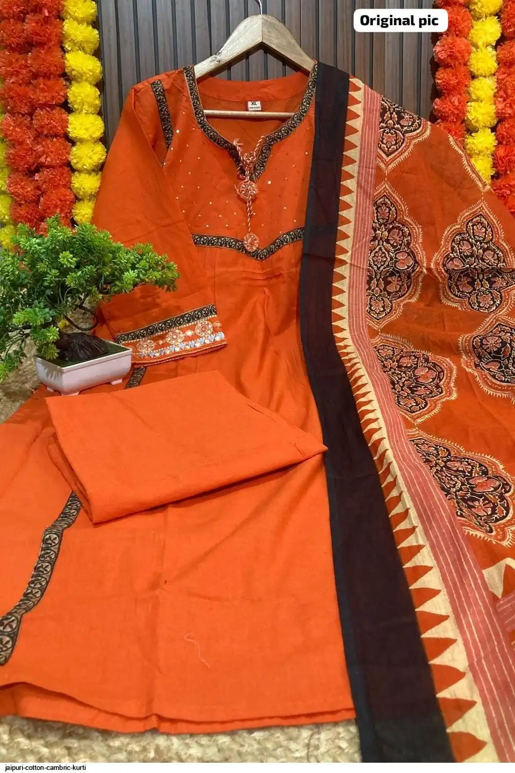 Jaipuri cotton cambric kurti pant dupatta sets