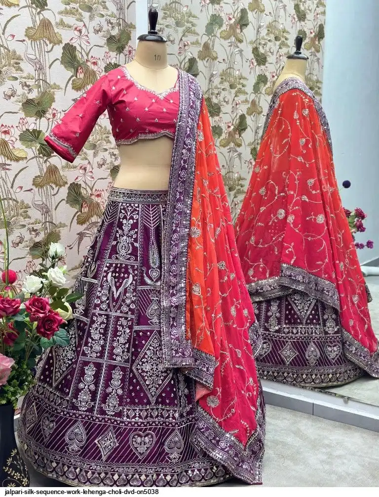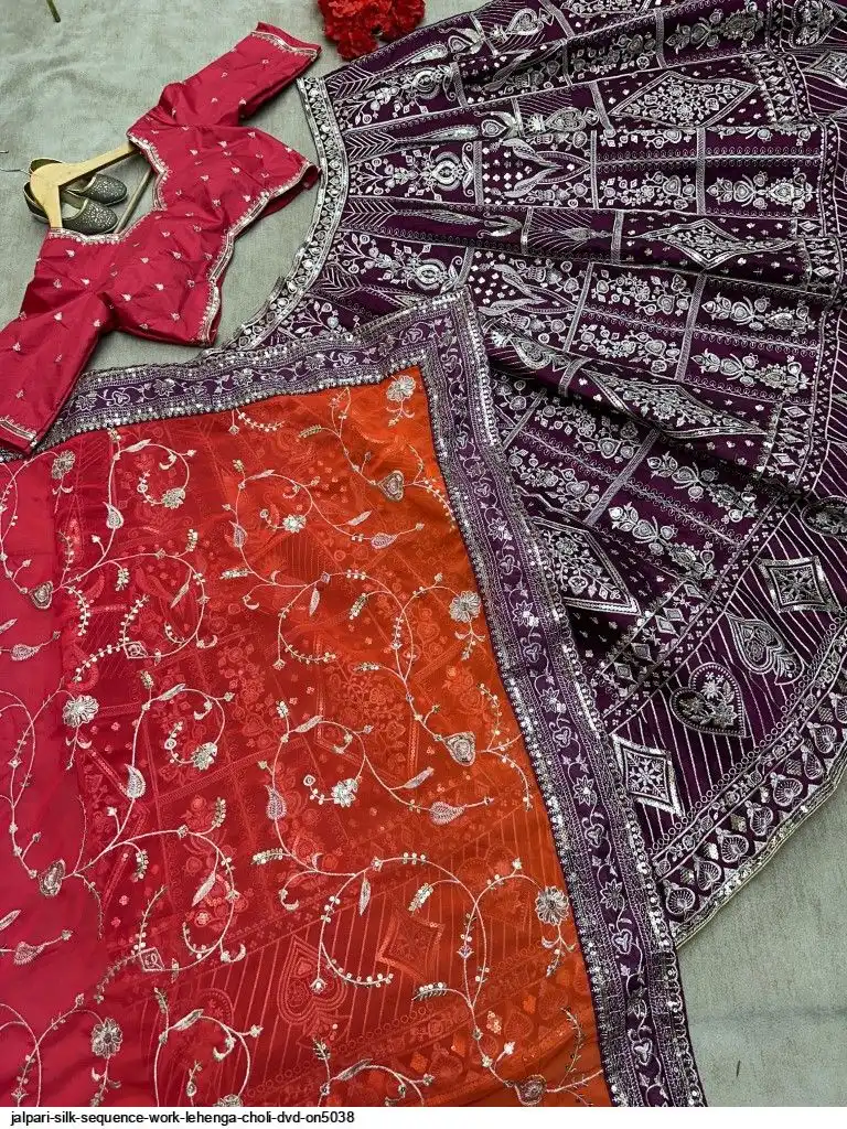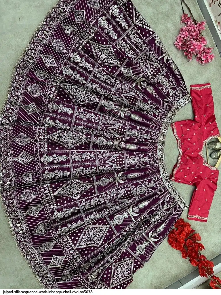 LEHNGA DETAILS:JALPARI SILK WITH EMBROIDERY SEQUENCE DESIGN WORK