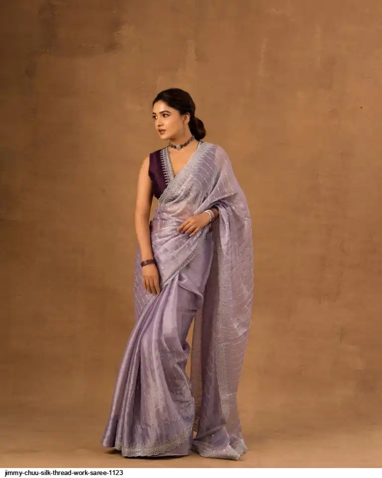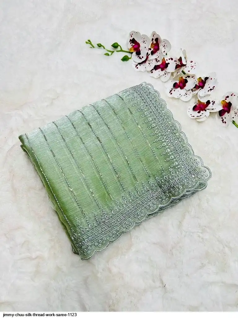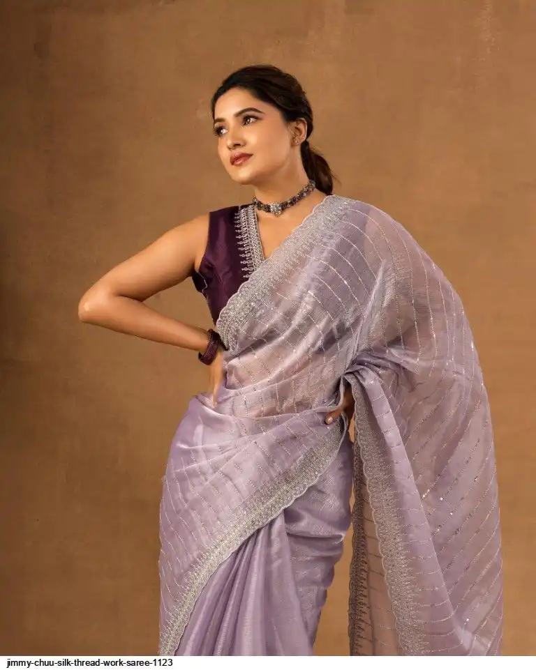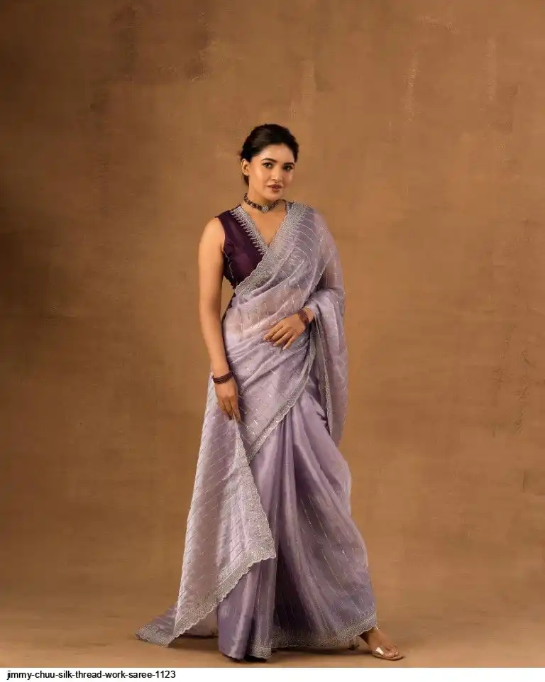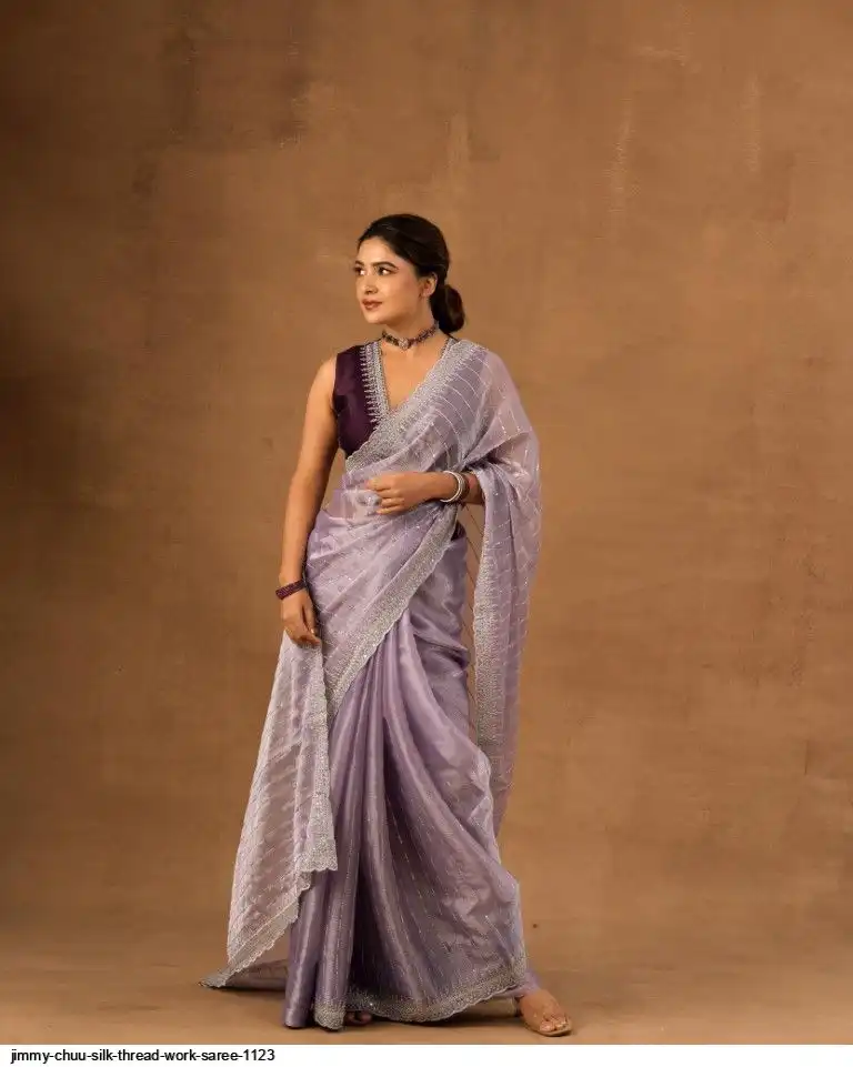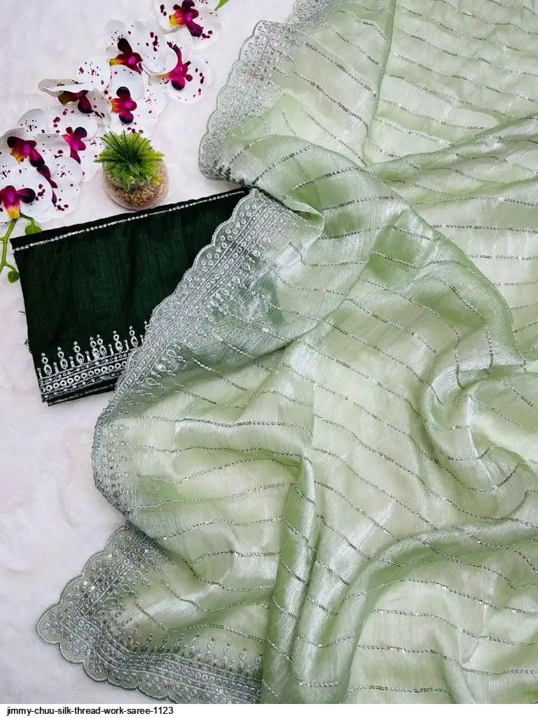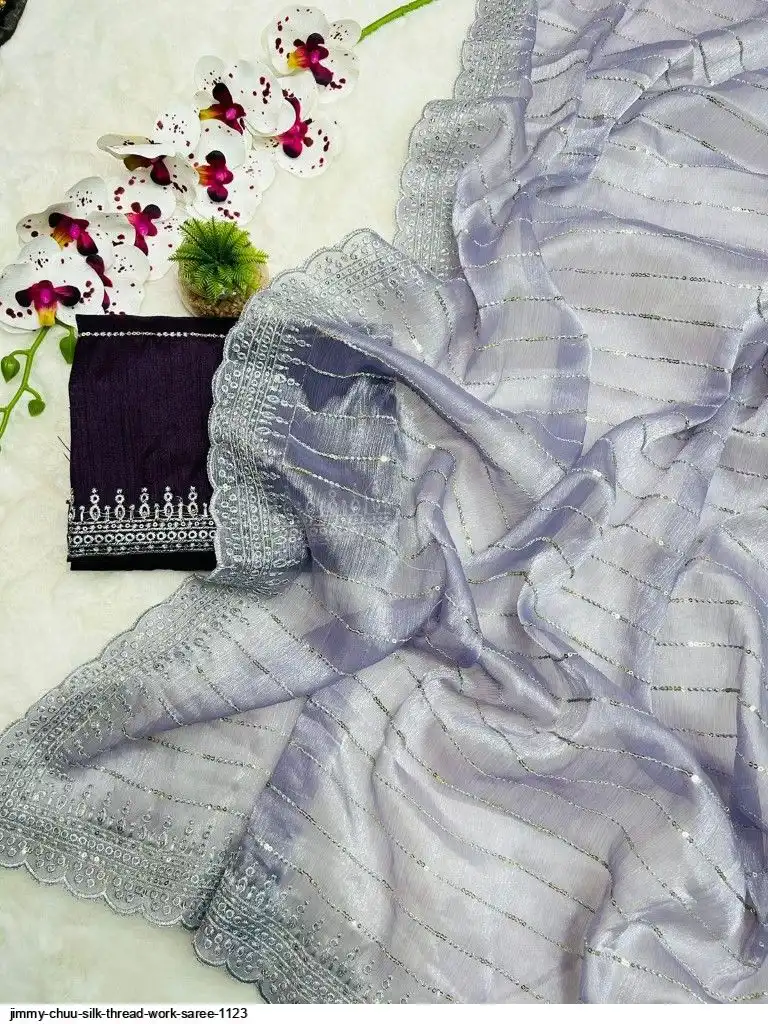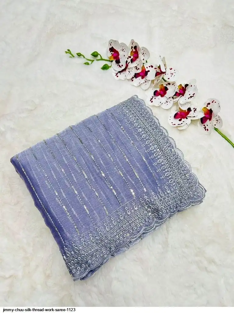 Primium Barbari Jimmy Chu Silk With Sequnce Thread work and Silver Zari
