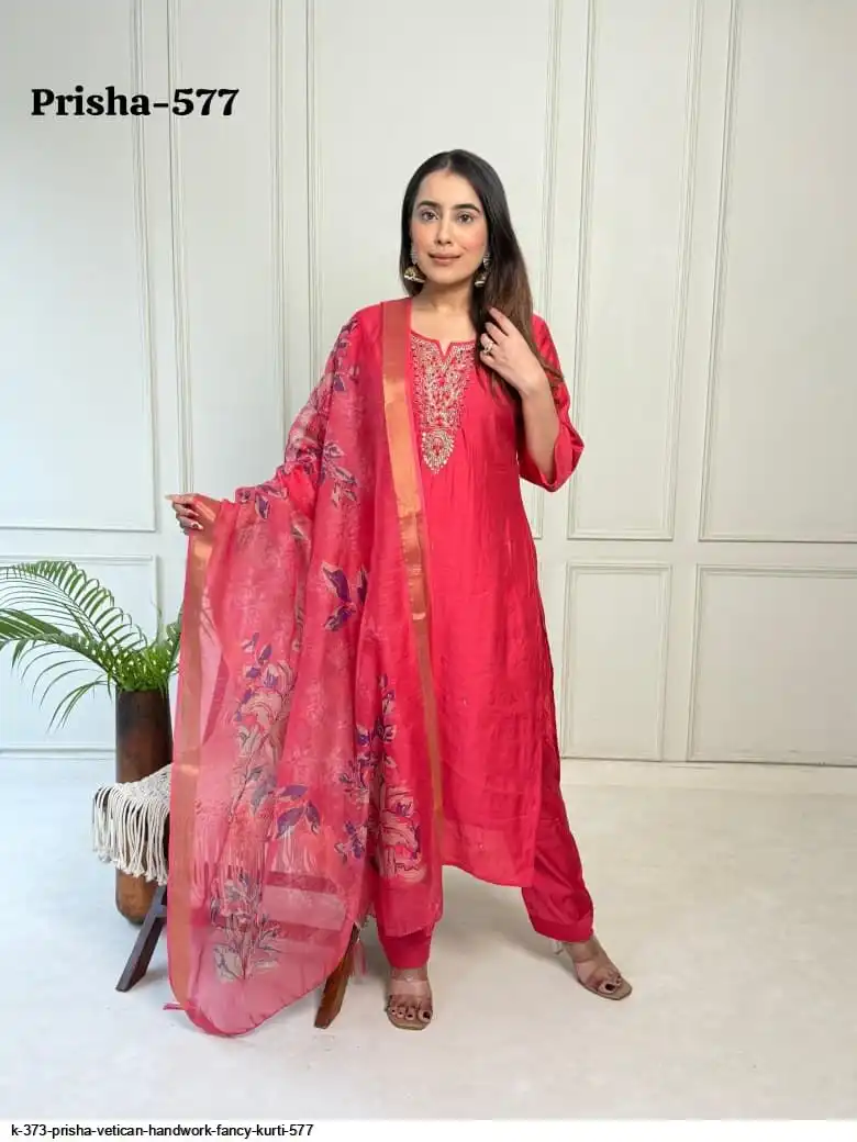 K 373 PRISHA VETICAN HANDWORK FANCY KURTI 577