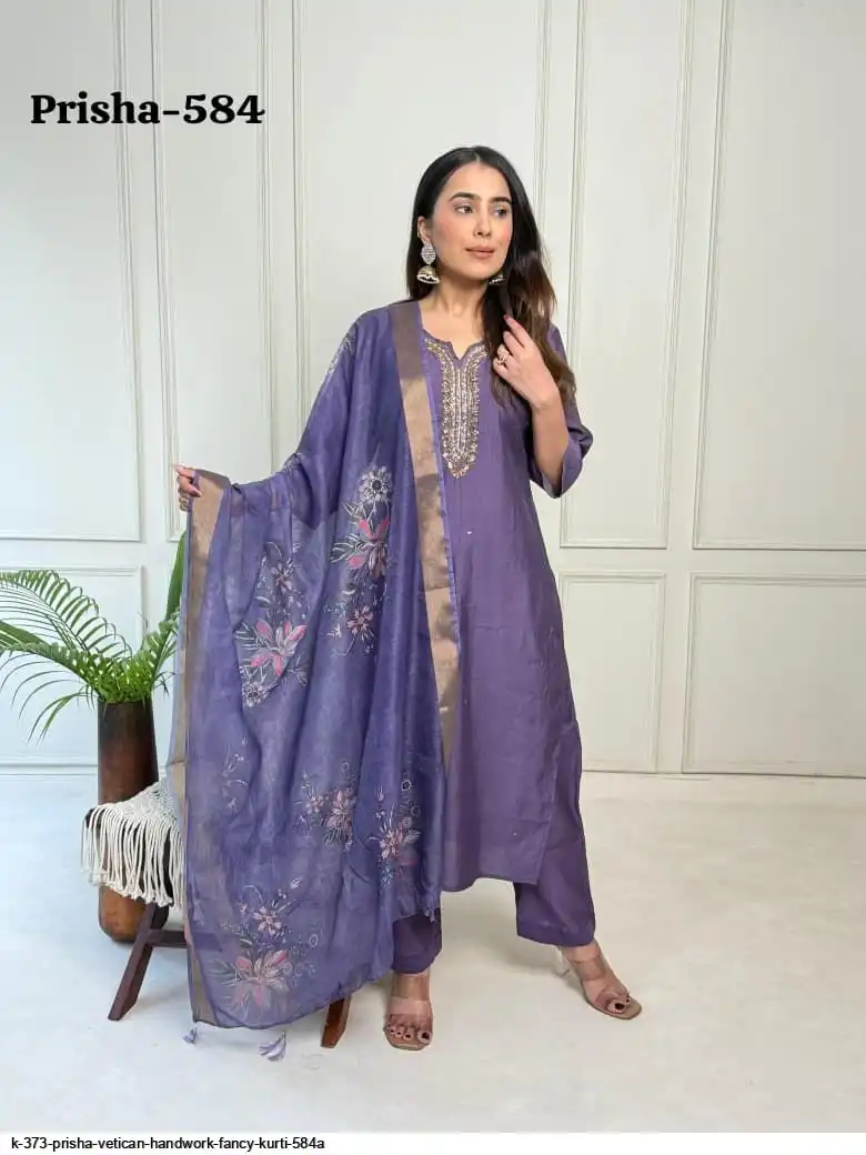 K 373 PRISHA VETICAN HANDWORK FANCY KURTI 584A