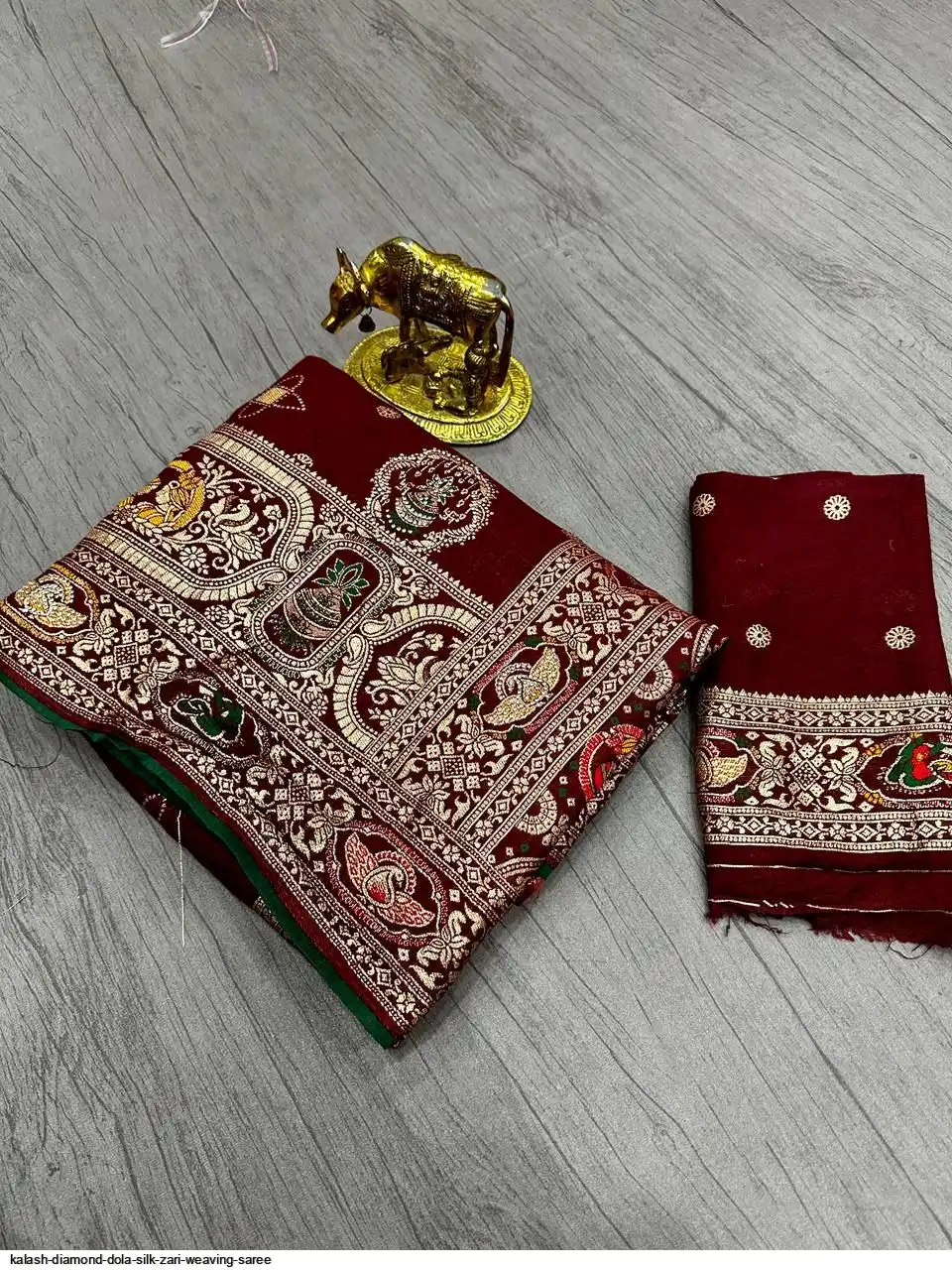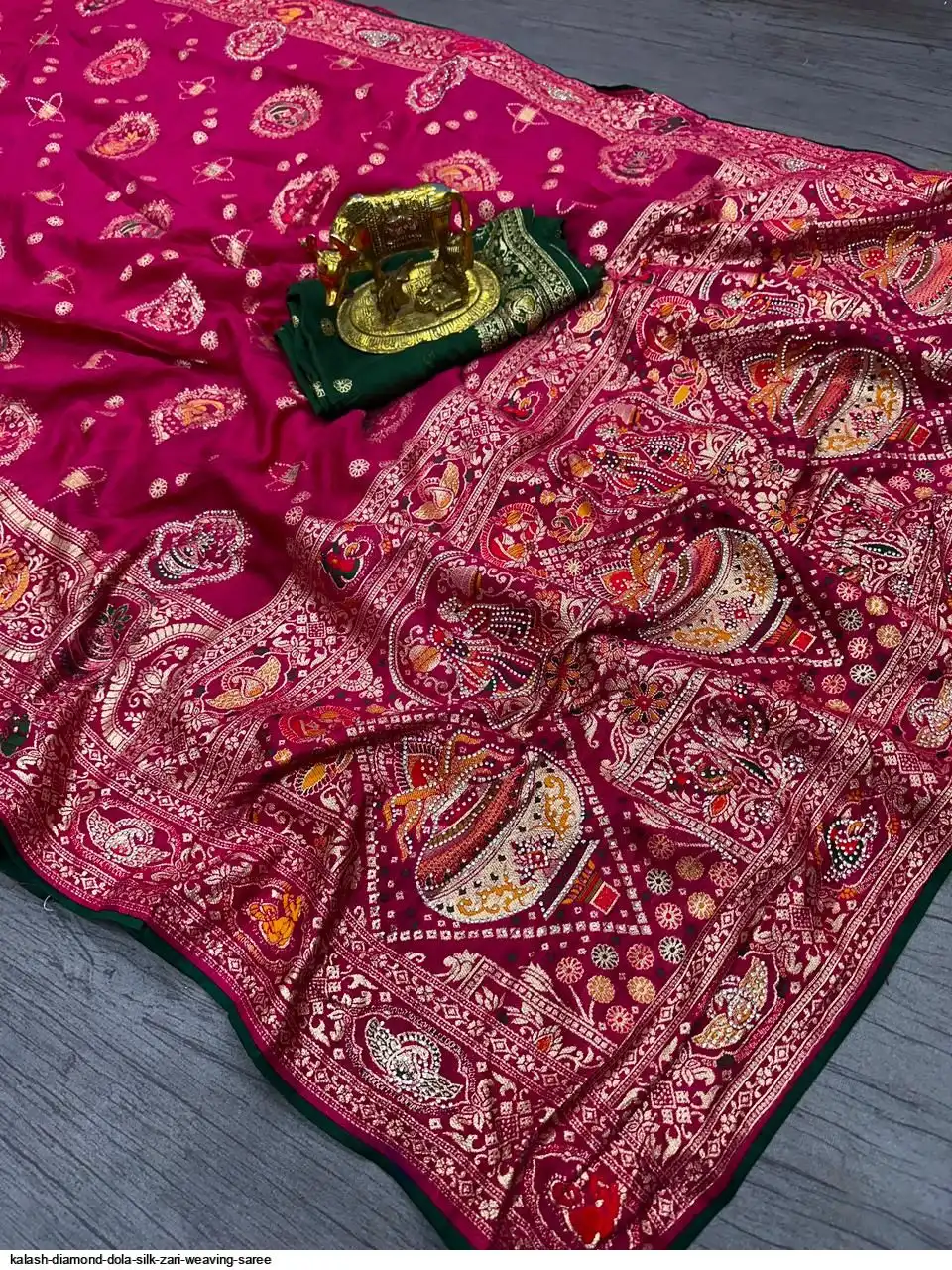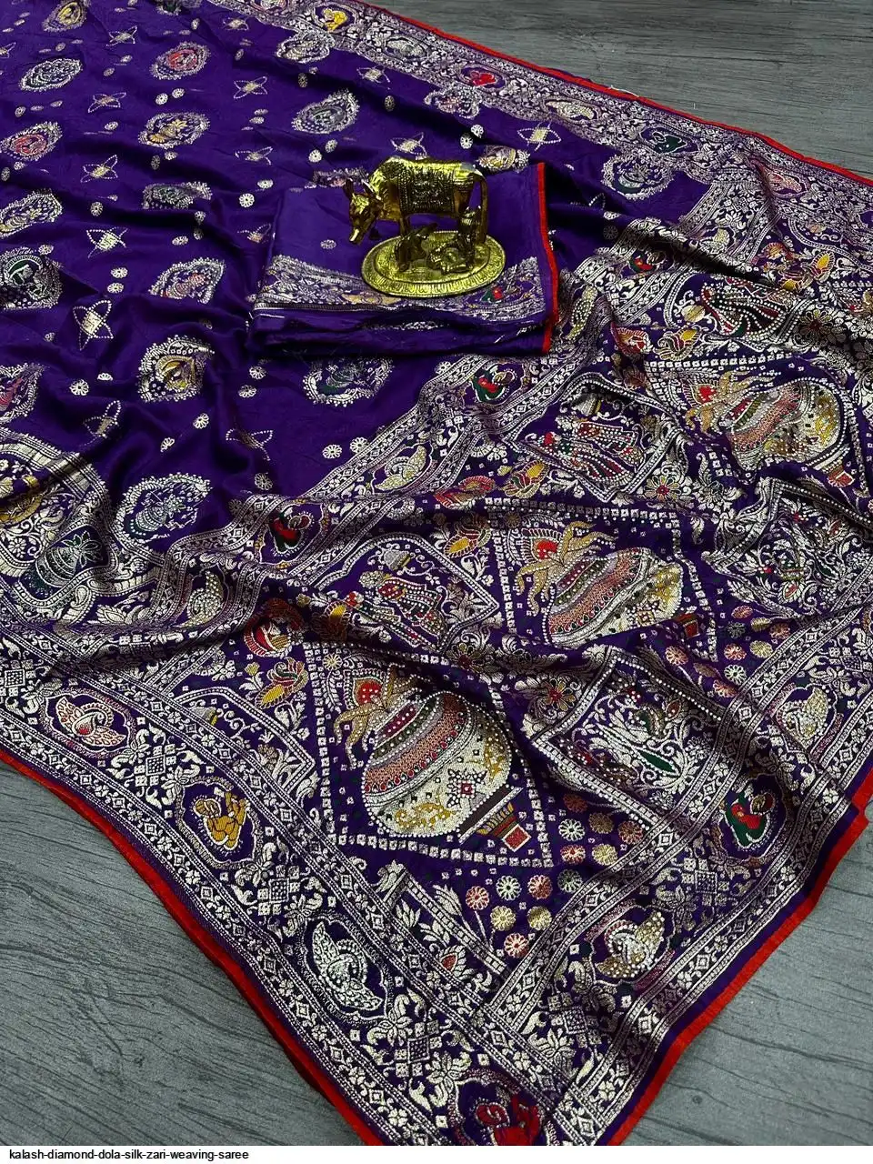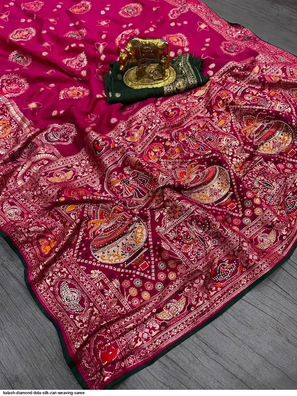 Saree :~ Pure & Premium Dola silk with Kalash Zari Weaving Saree & Heavy Zarkan Work Pallu with Allover Border in Saree