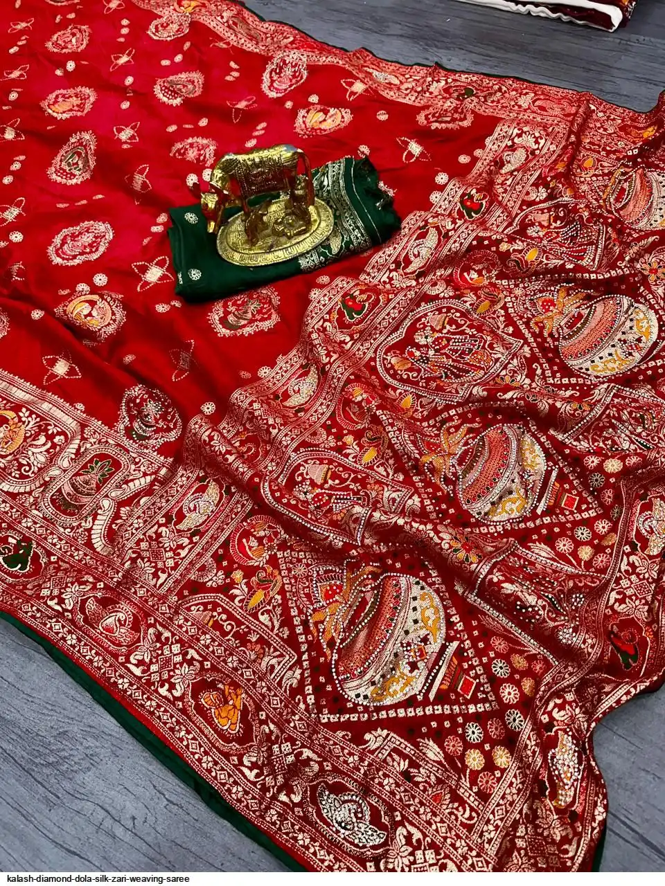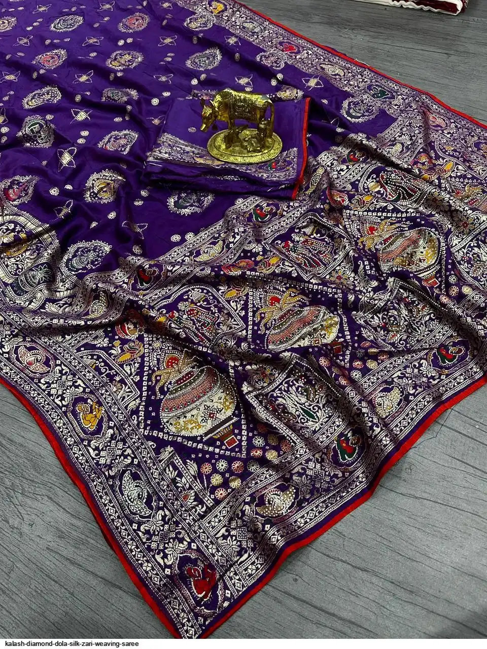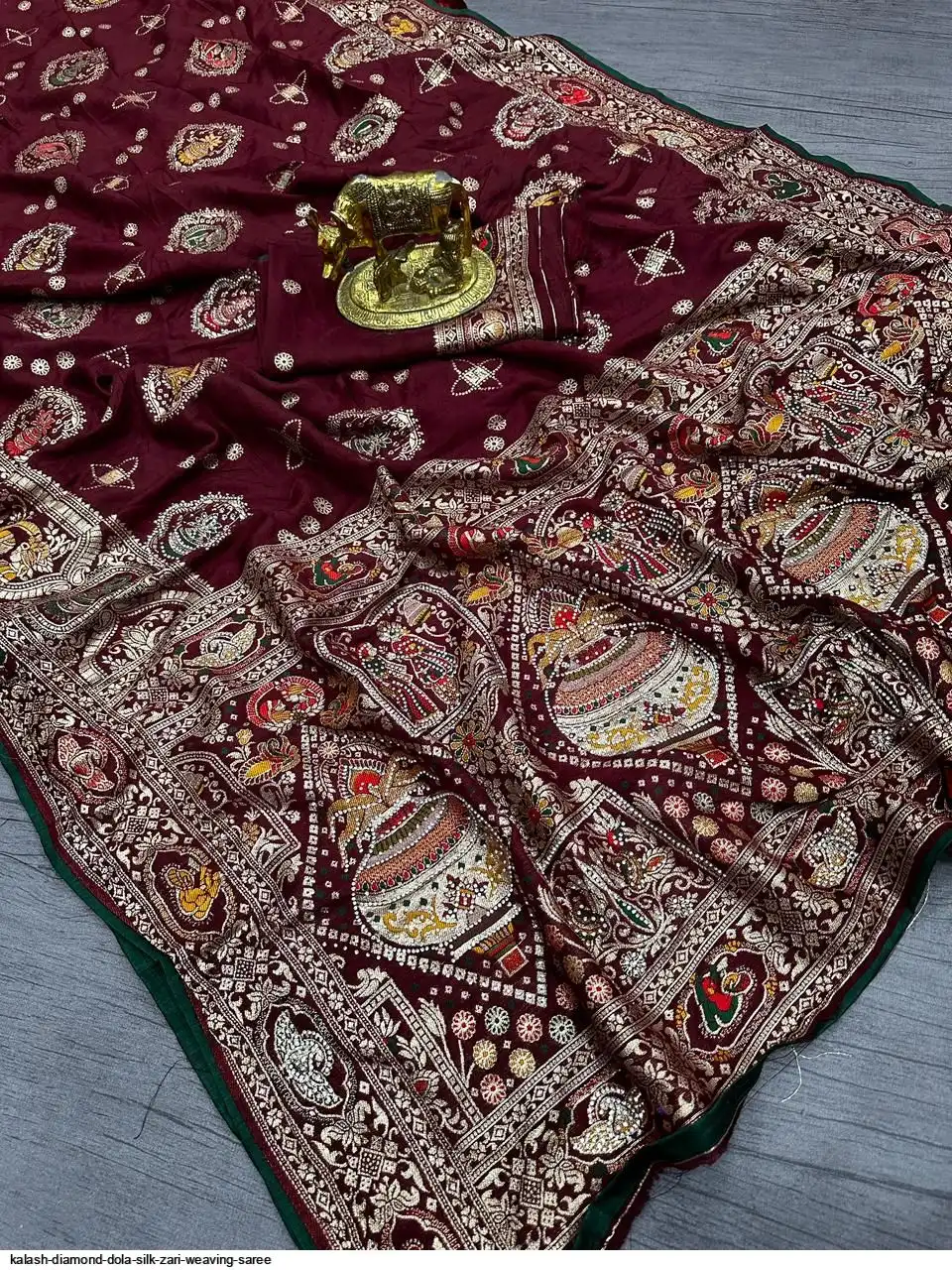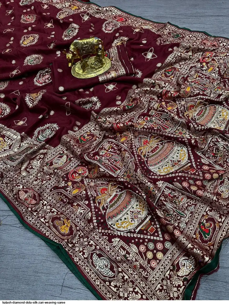 Saree :~ Pure & Premium Dola silk with Kalash Zari Weaving Saree & Heavy Zarkan Work Pallu with Allover Border in Saree