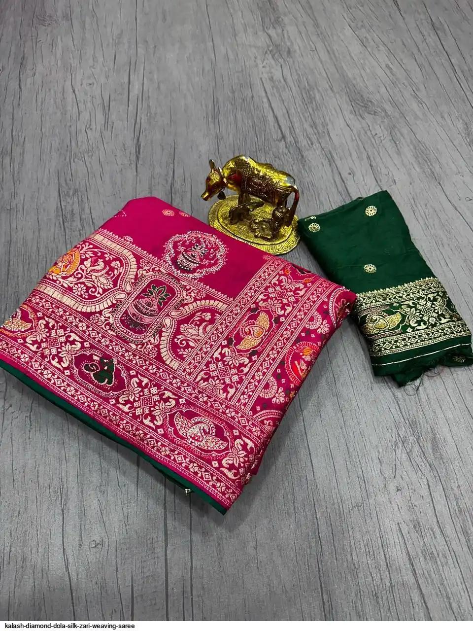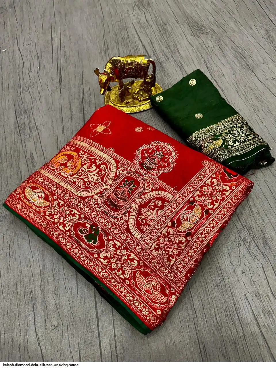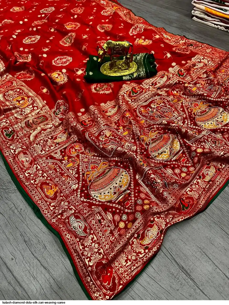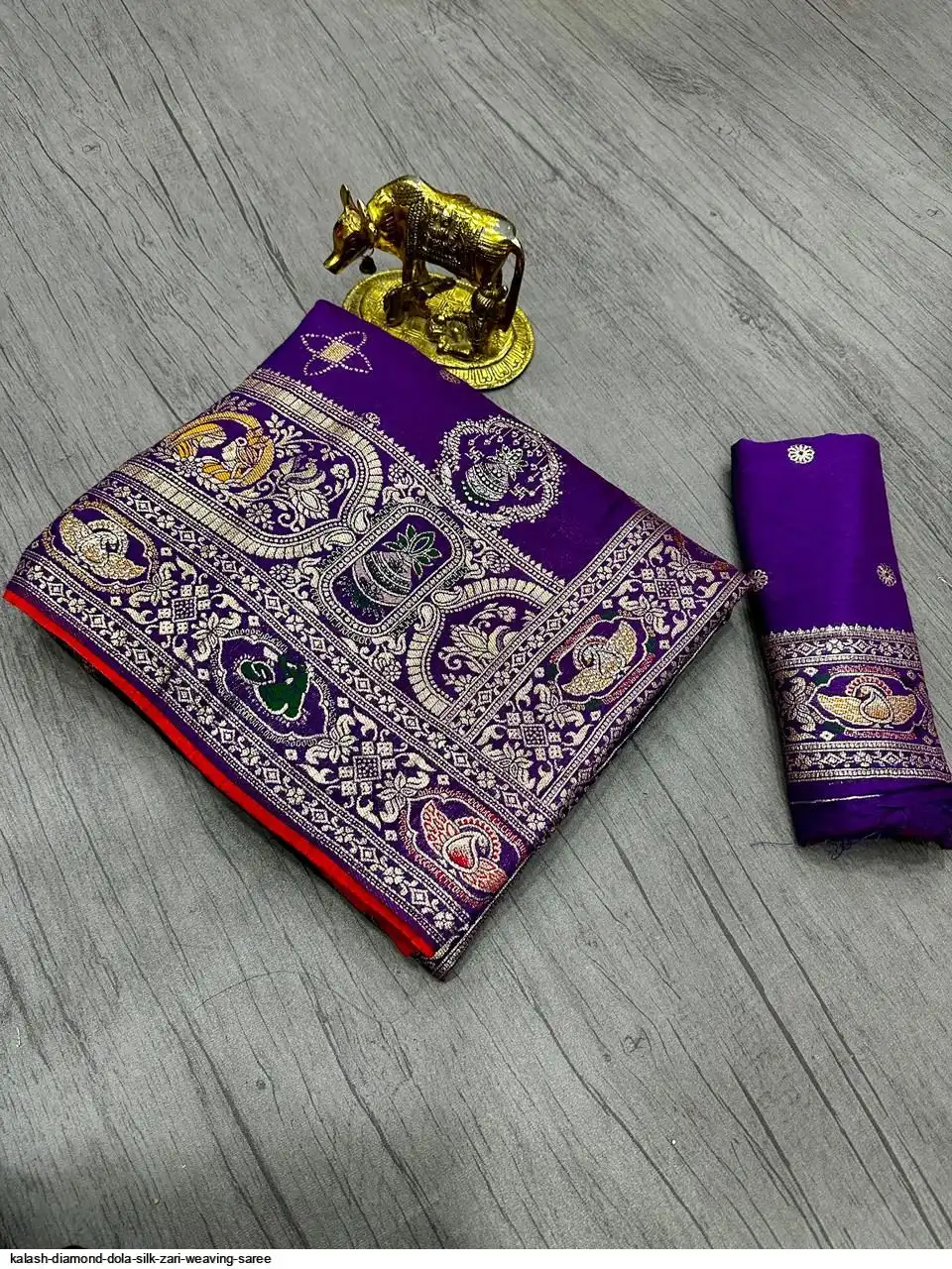Saree :~ Pure & Premium Dola silk with Kalash Zari Weaving Saree & Heavy Zarkan Work Pallu with Allover Border in Saree