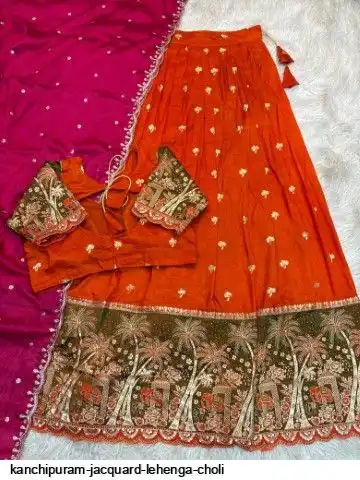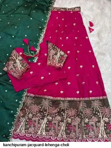 Kanchipuram Jacquard border Lehanga Full stitched with cutwork lace with contrast Duppata