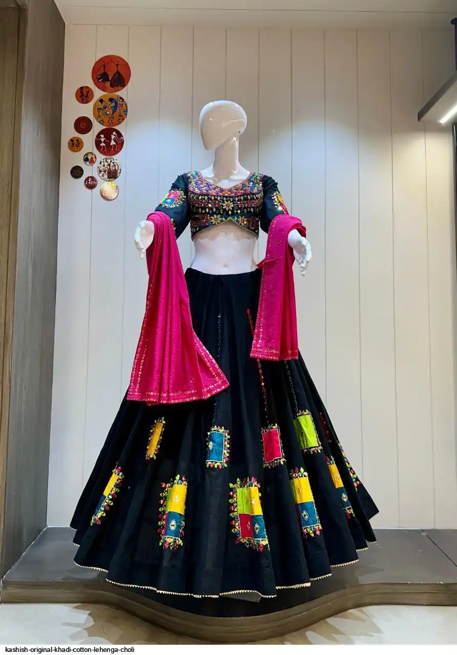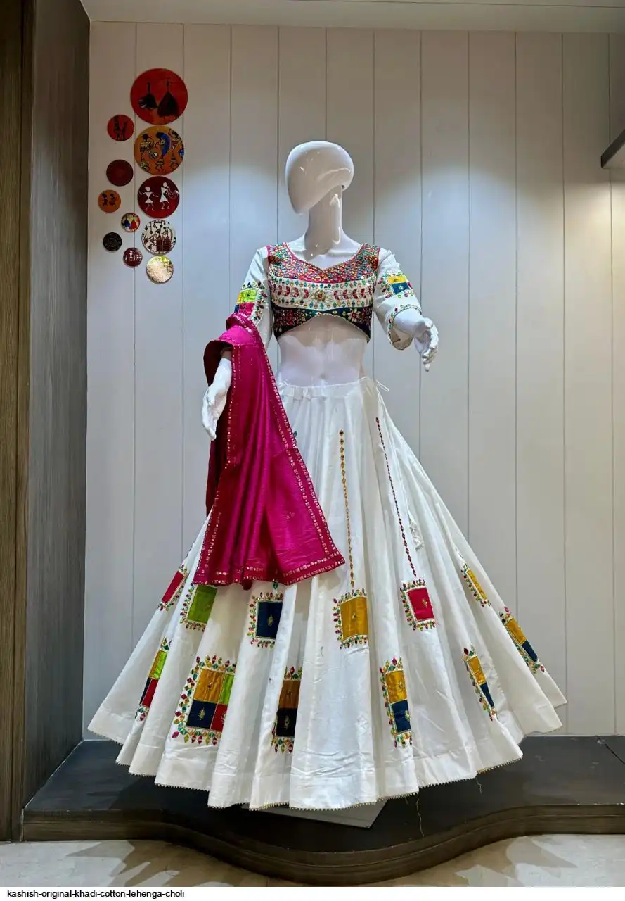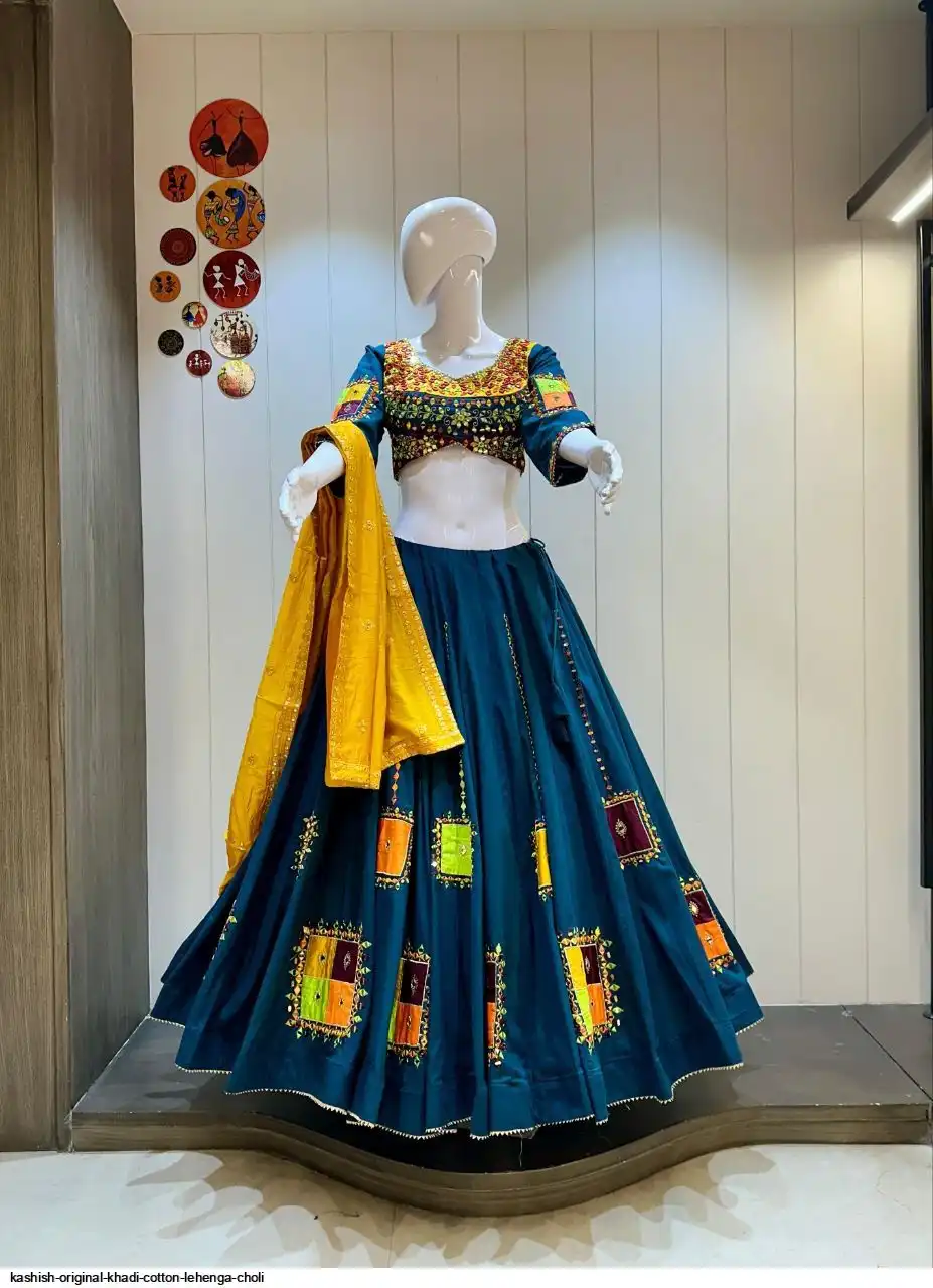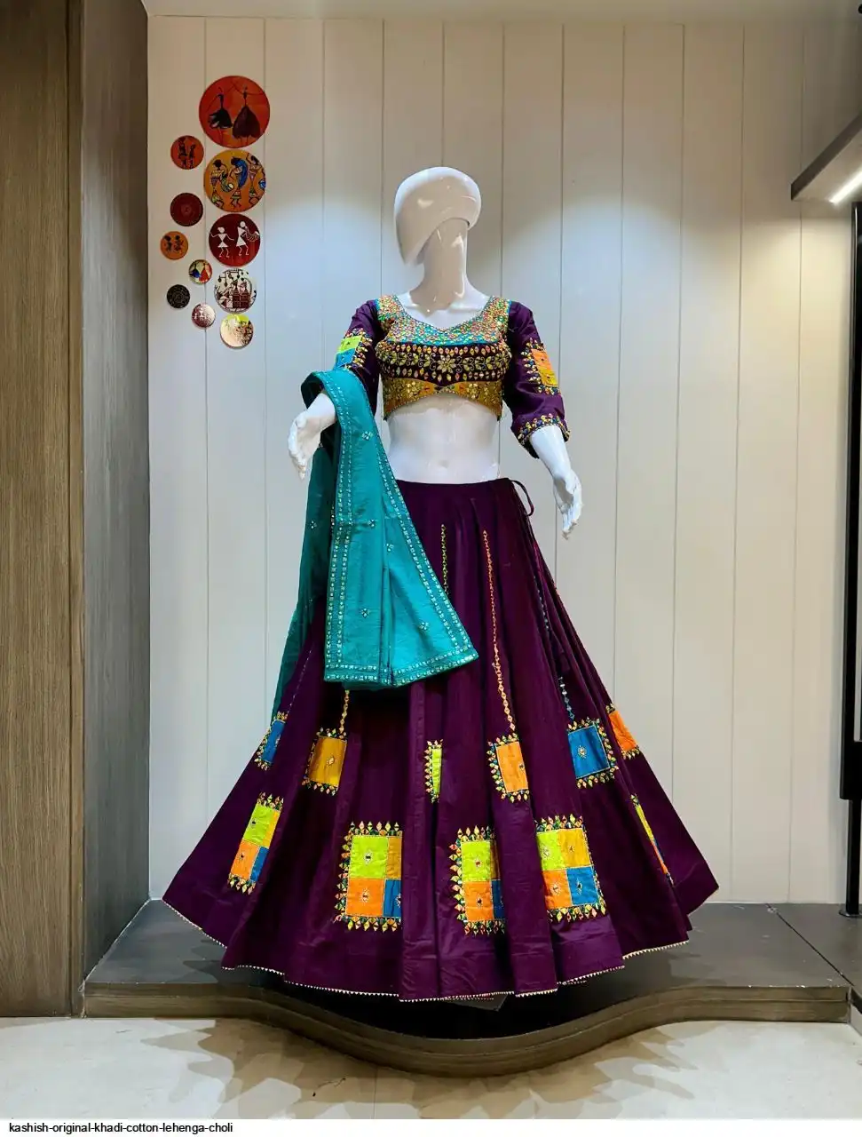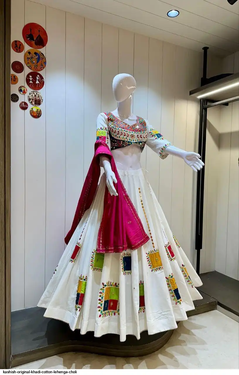 Original khadi cotton fabric chaniya choli with hand mirror work