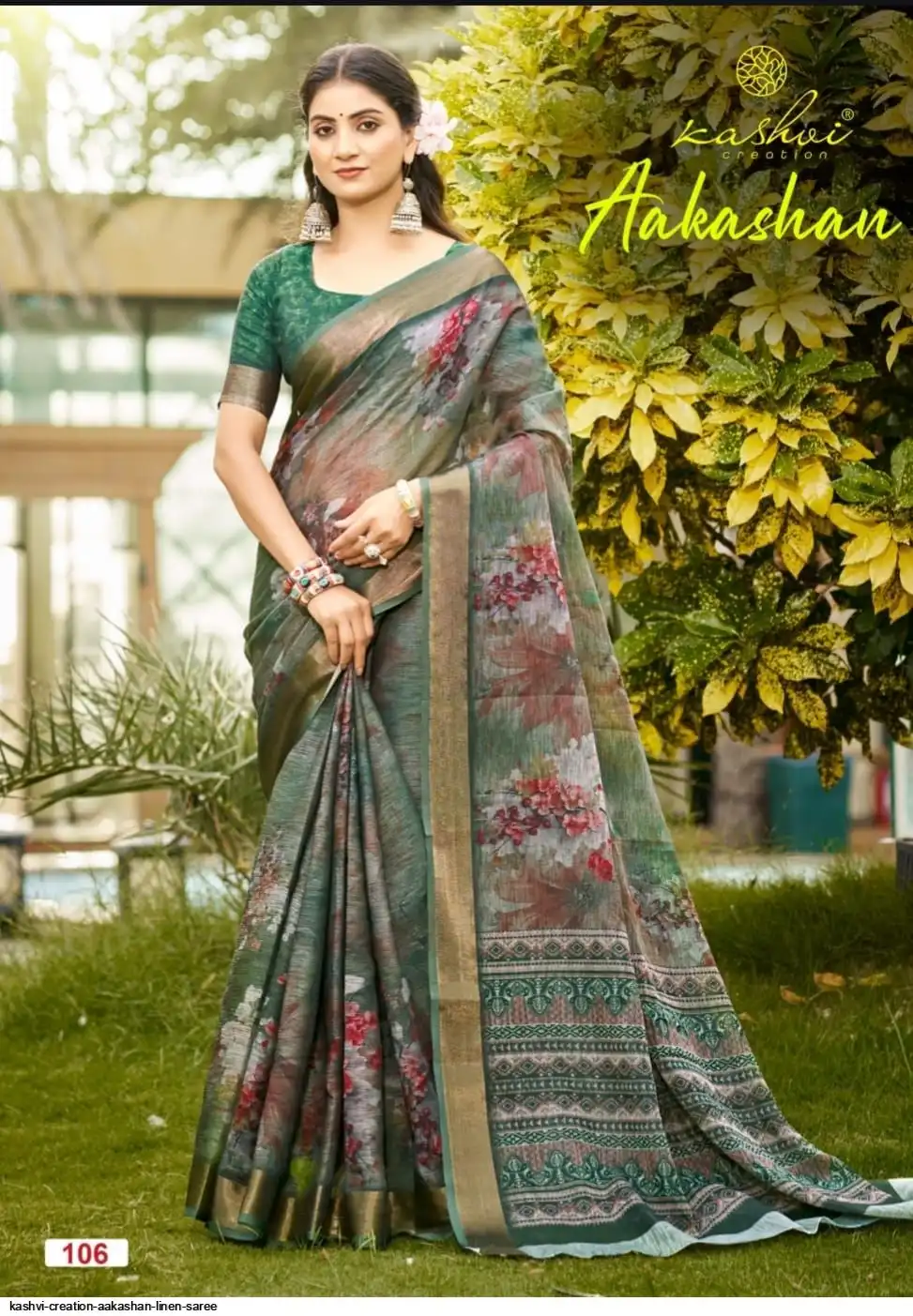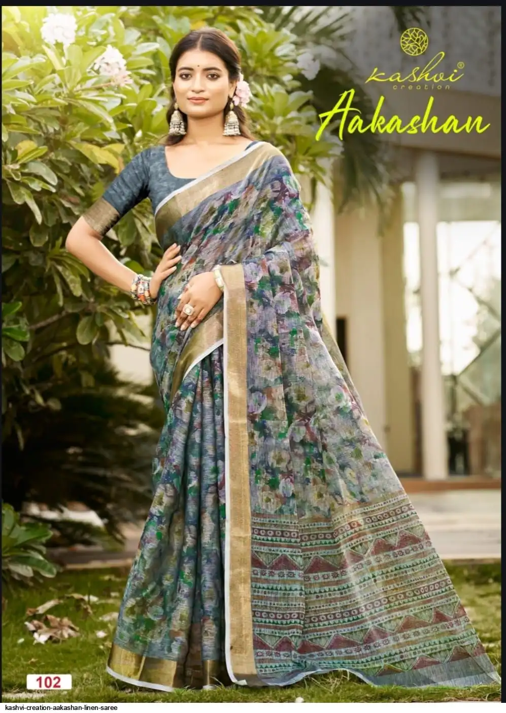 FABRIC - BLACK LINEN WITH GOLD ZARI BORDER