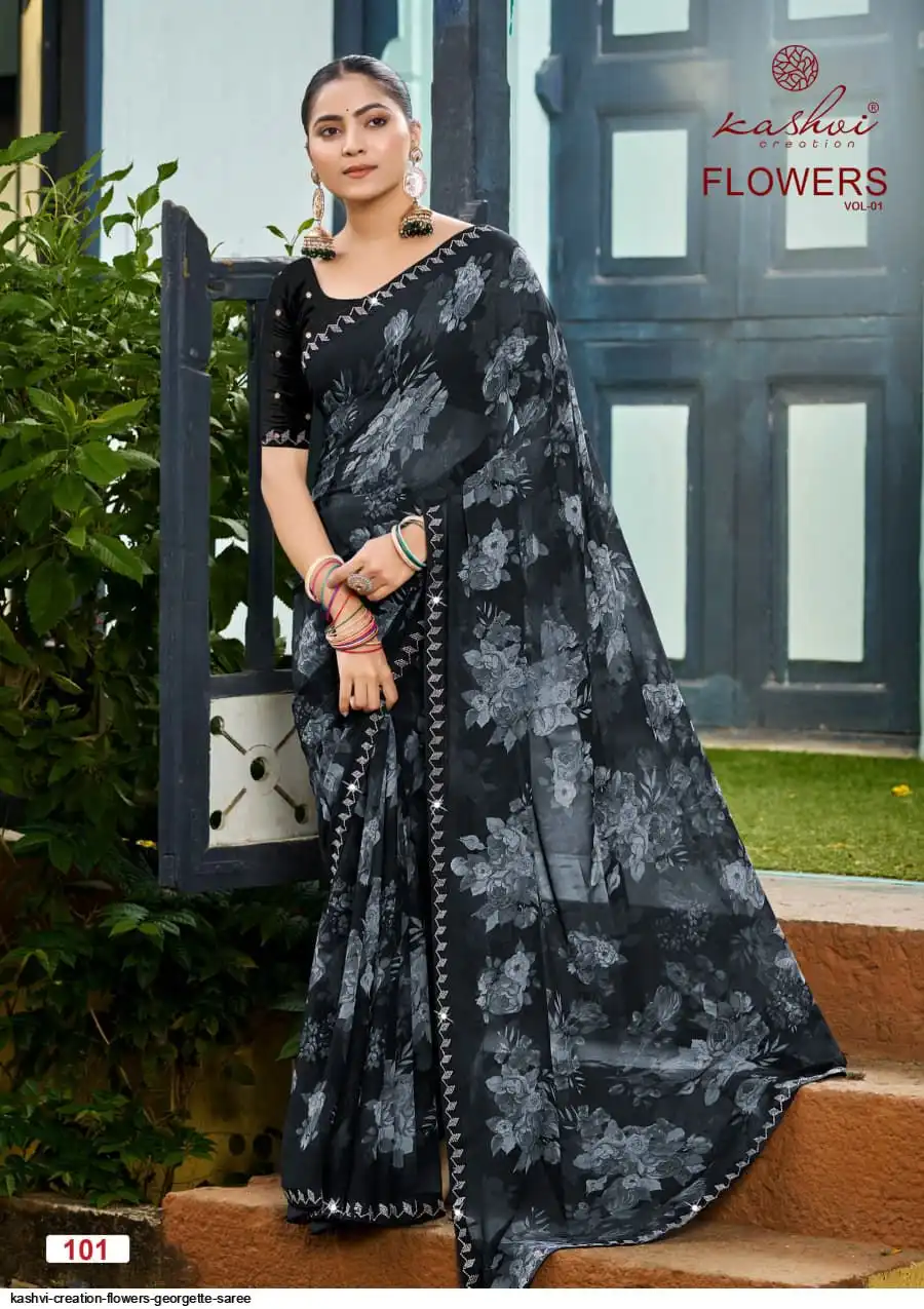 FABRIC - MAJOR GEORGETTE WITH SWAROVSKI WORK AND DYEBLE BLOUSE