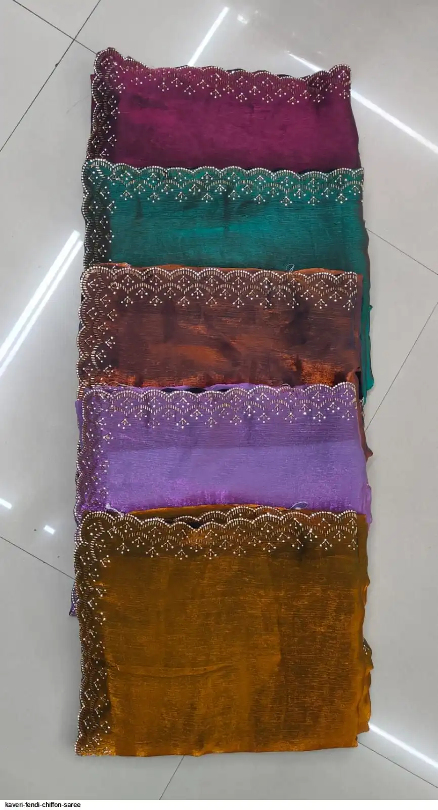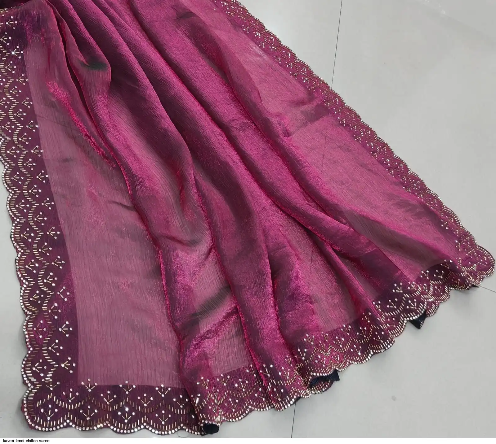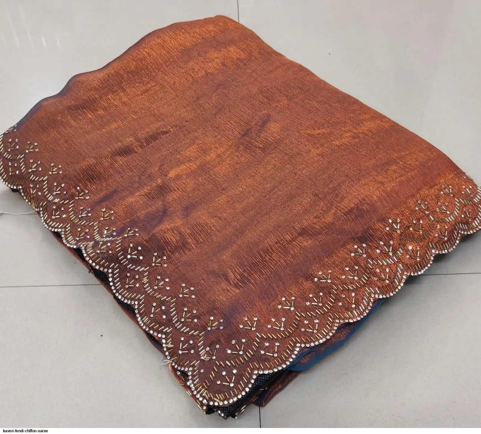Saree Fabric - fendi CHiffon fenchi bordar saree