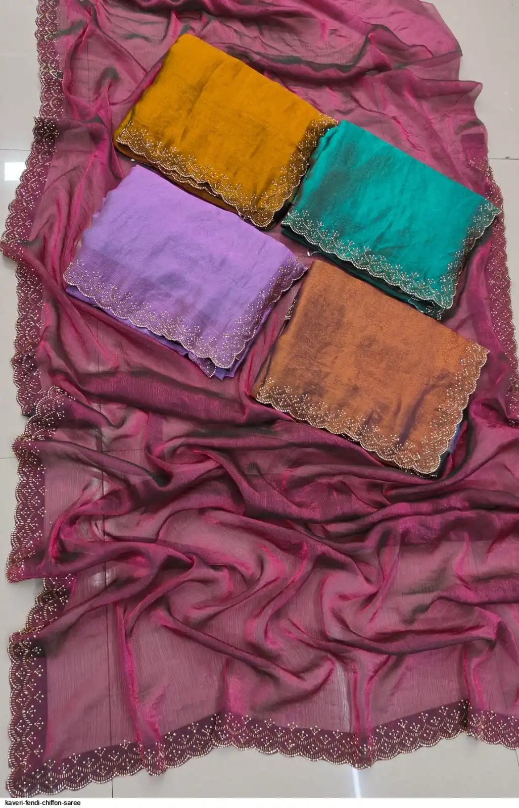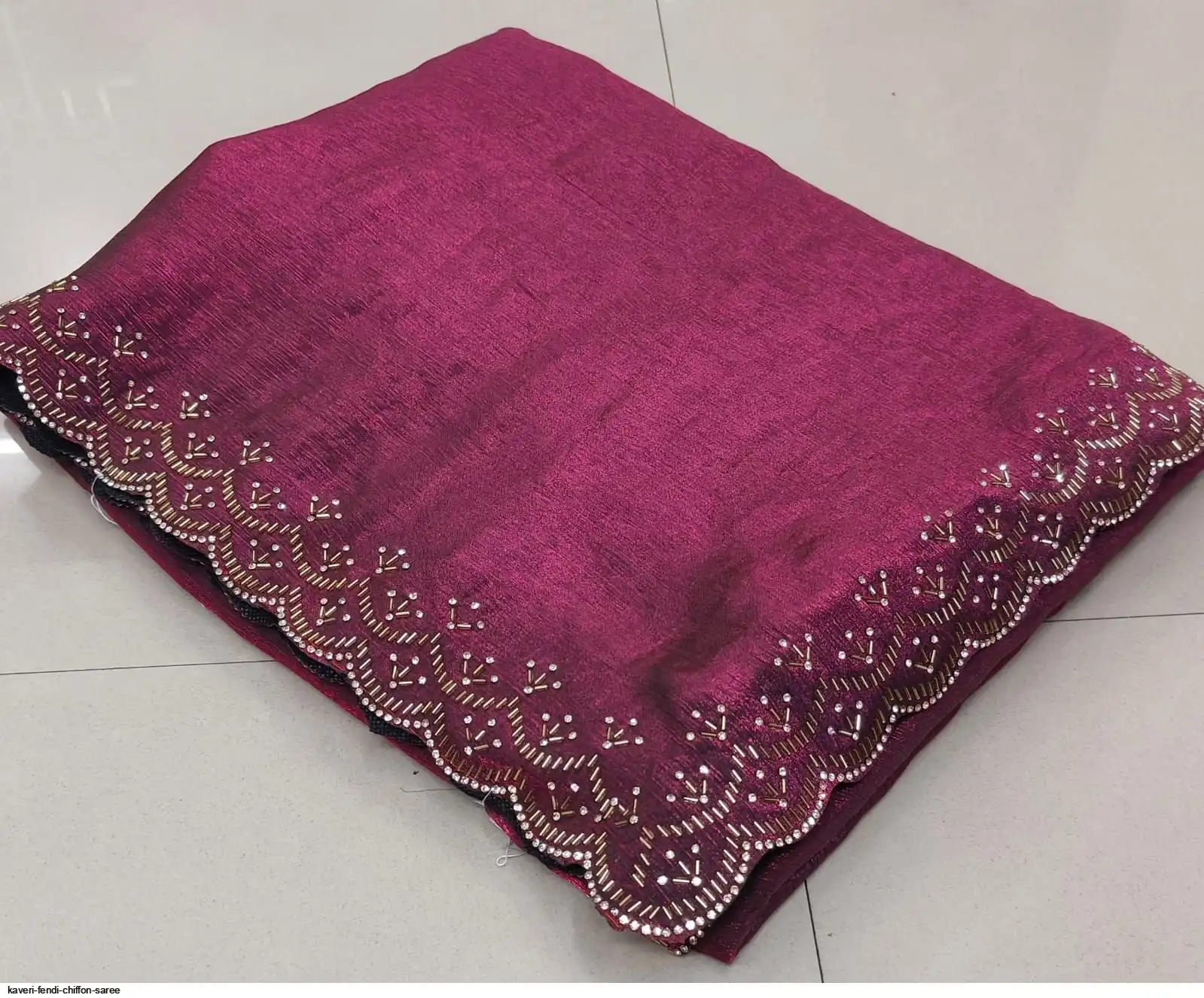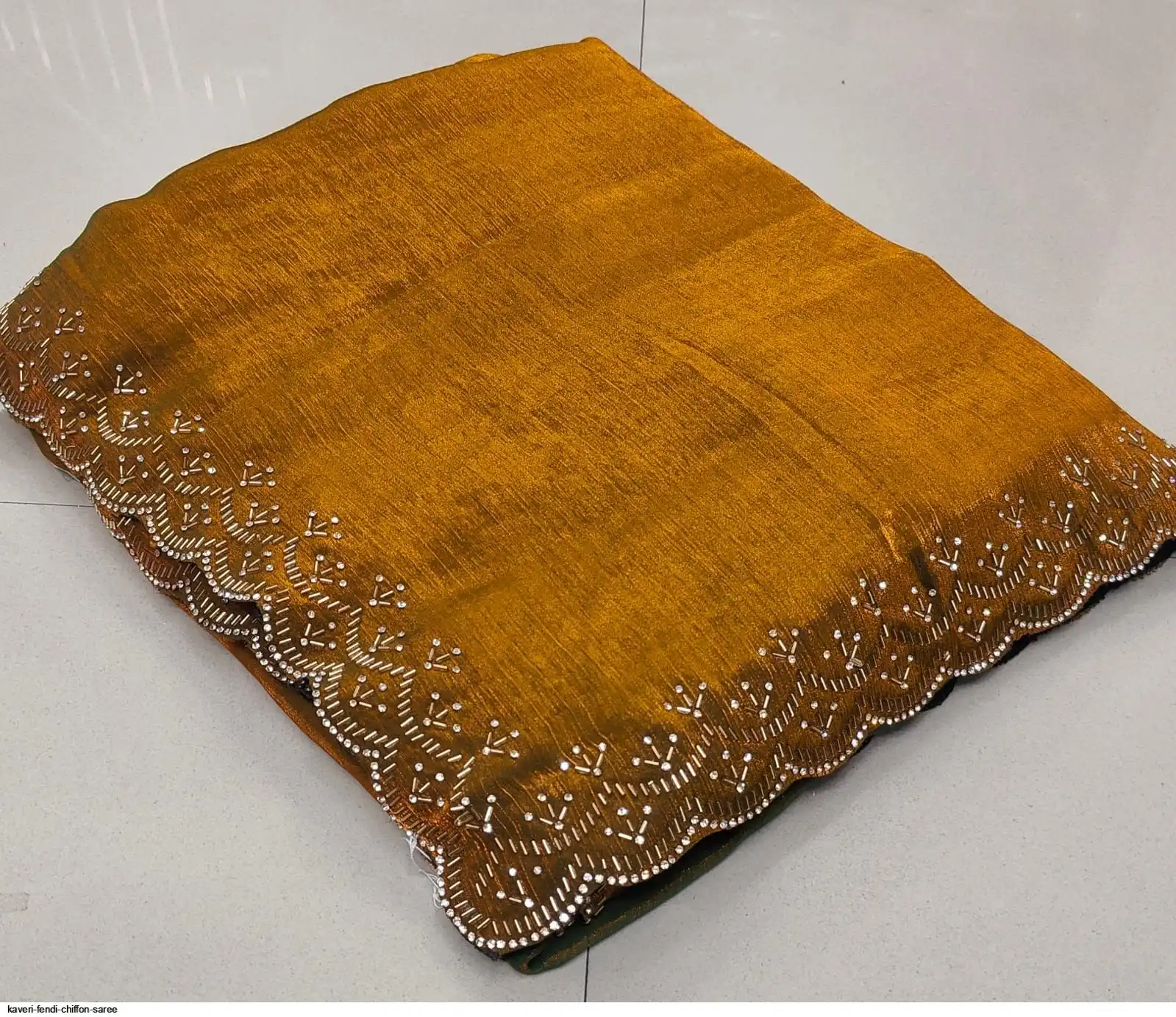 Saree Fabric - fendi CHiffon fenchi bordar saree