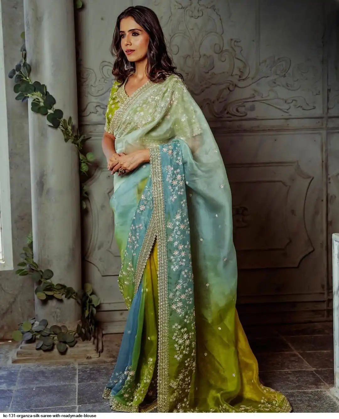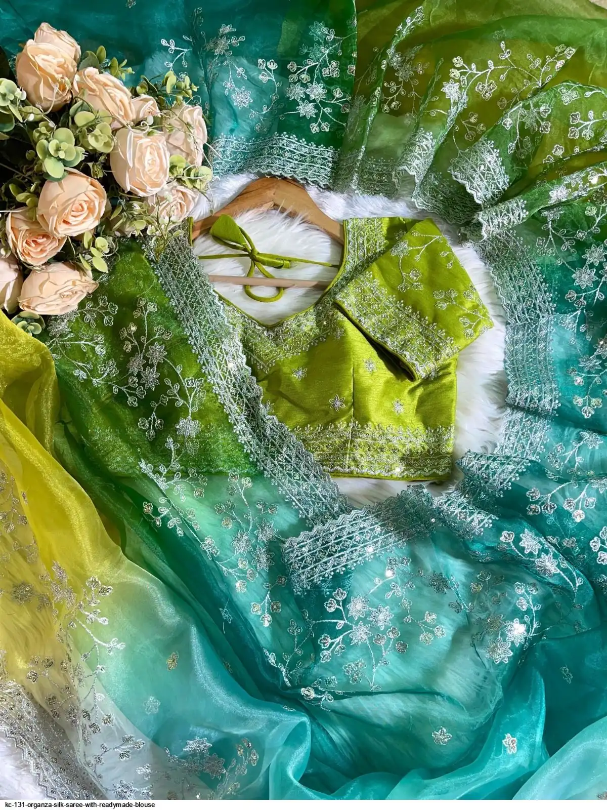 pure soft organza silk saree with beautiful prism designs with heavy embroidery panel work nd border in all over saree with aarco..