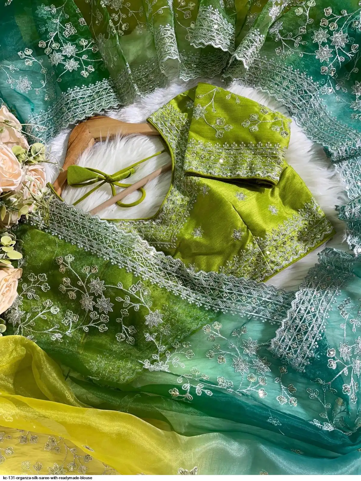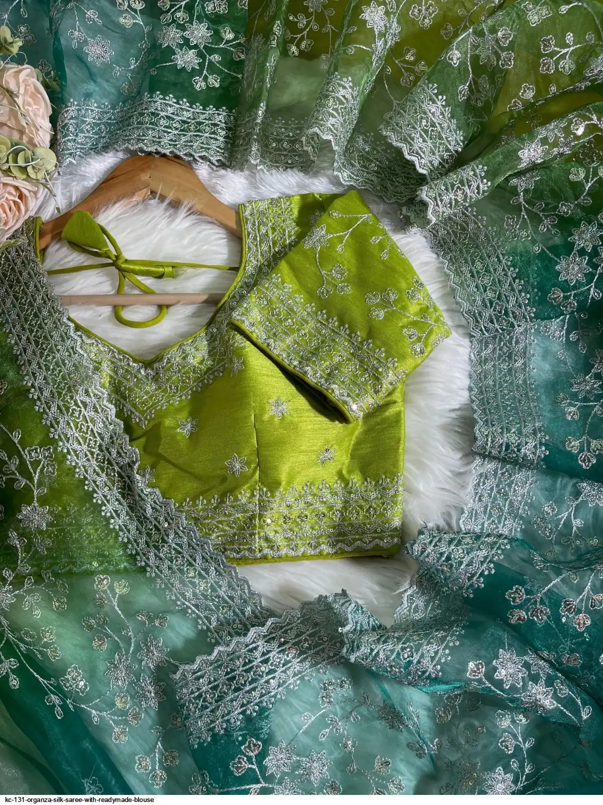Paired with fully stitched embroidery work blouse on mono silk blouse
