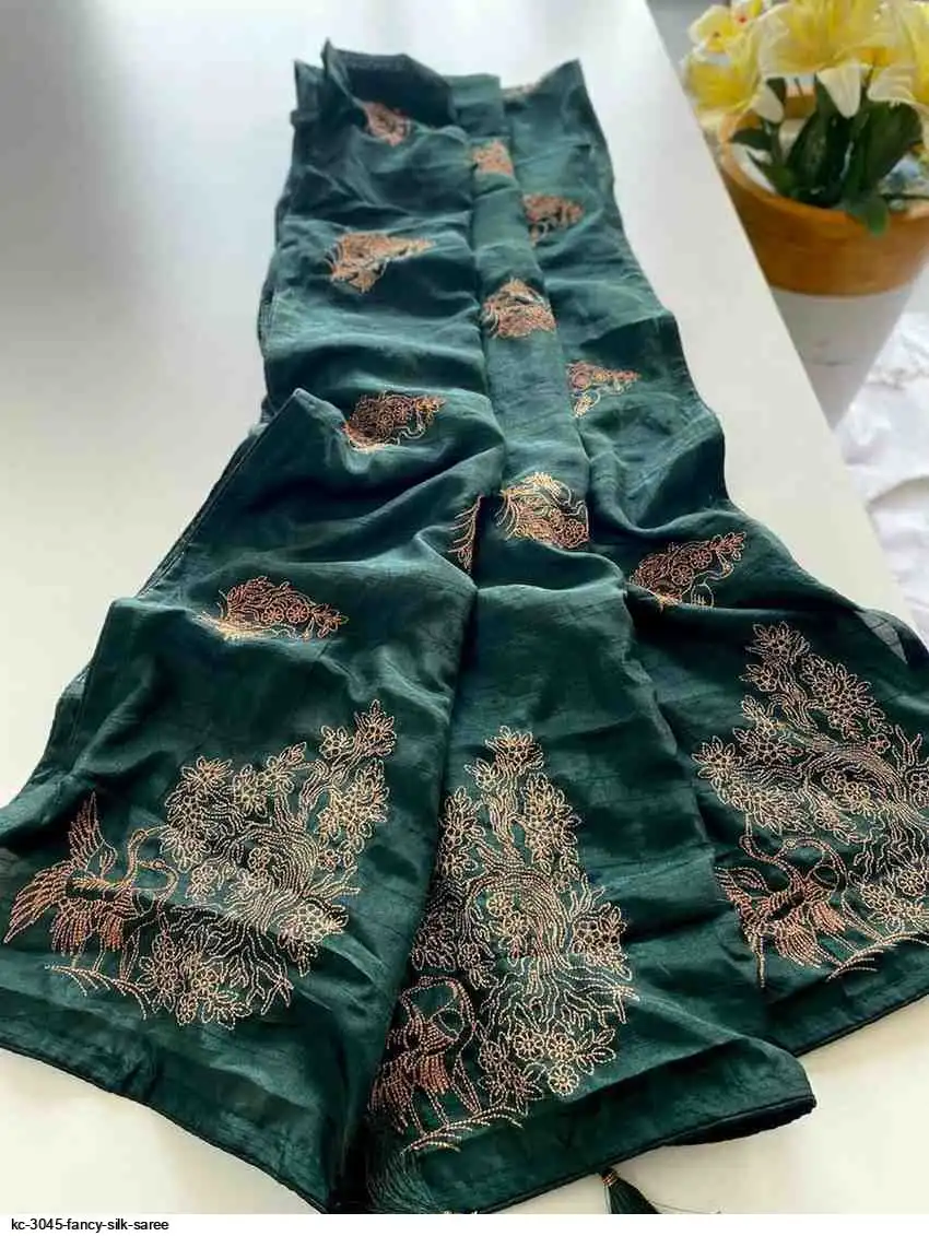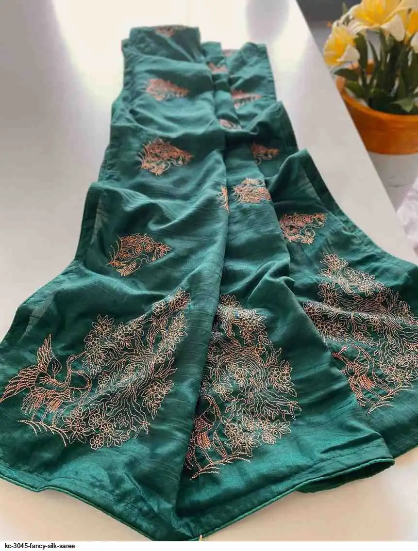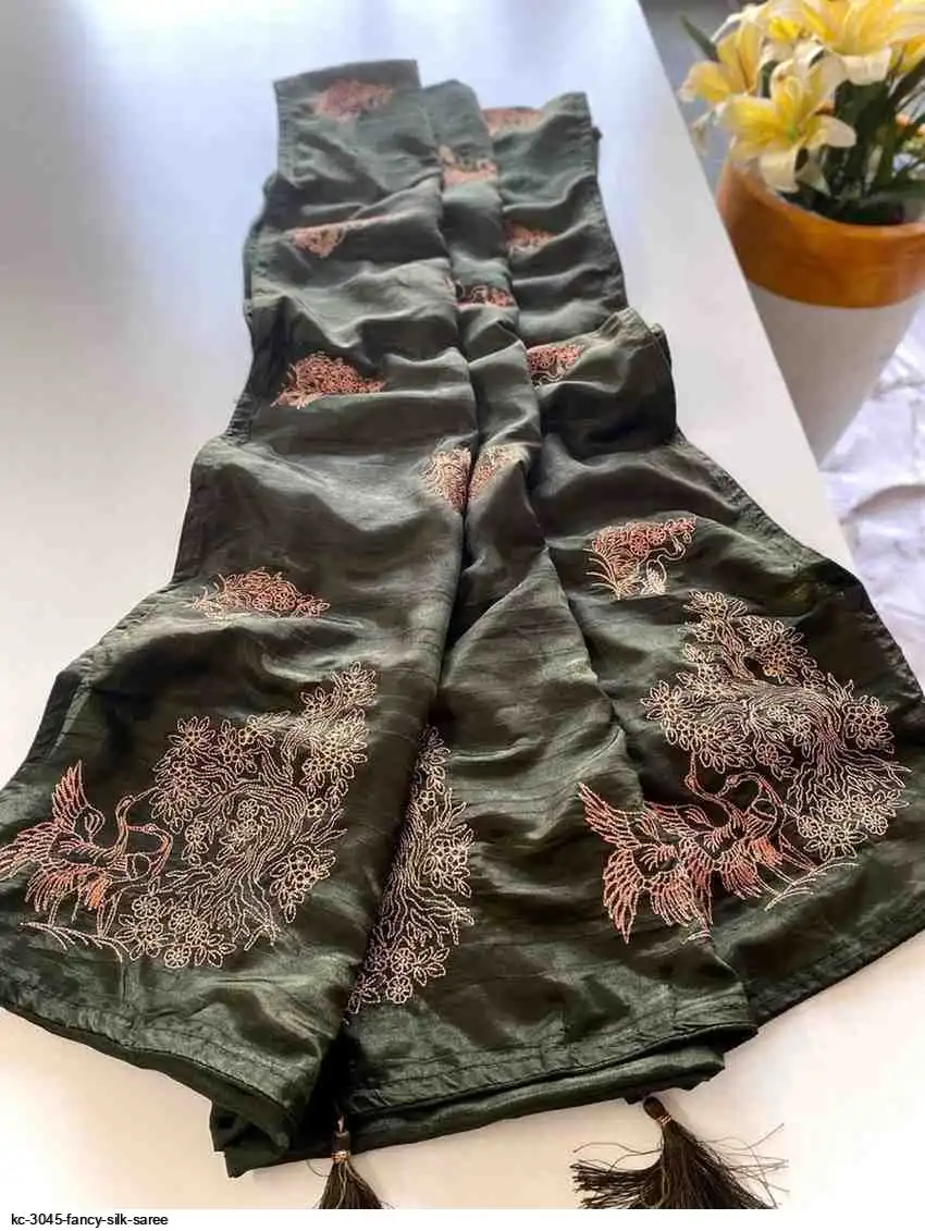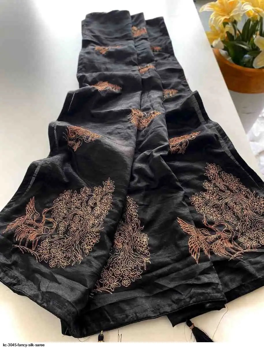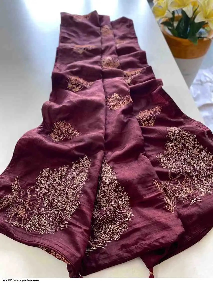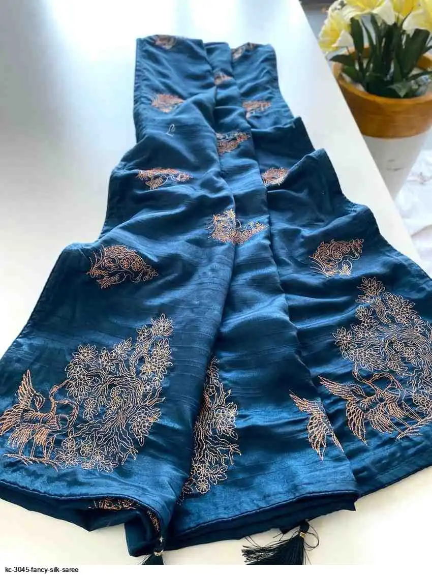 A new concept of silk with zari based embroidery and piping. The fabric is soft and easy to drape.