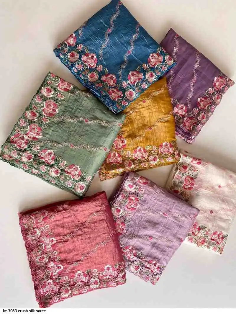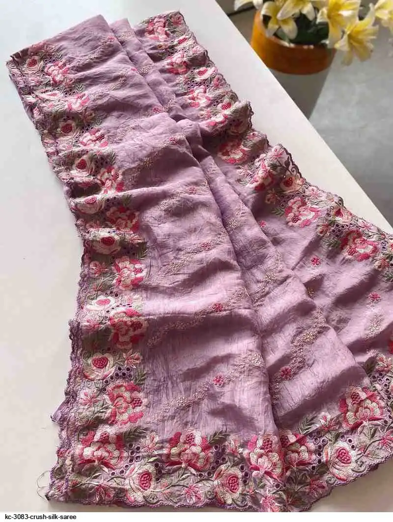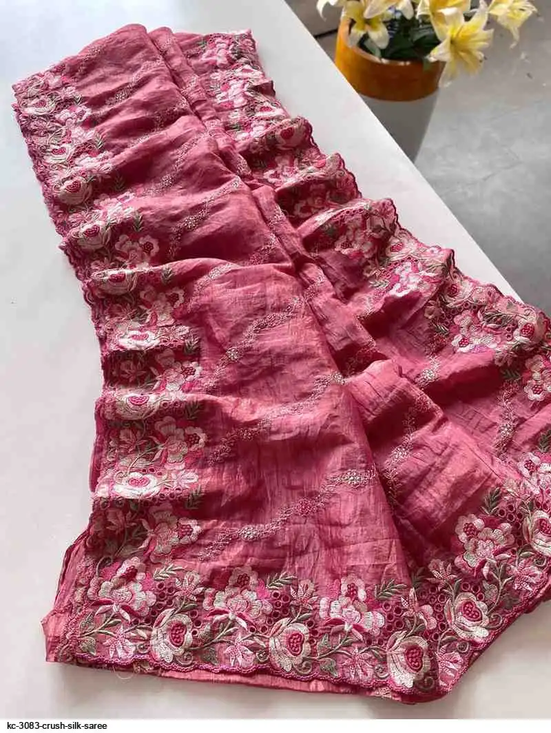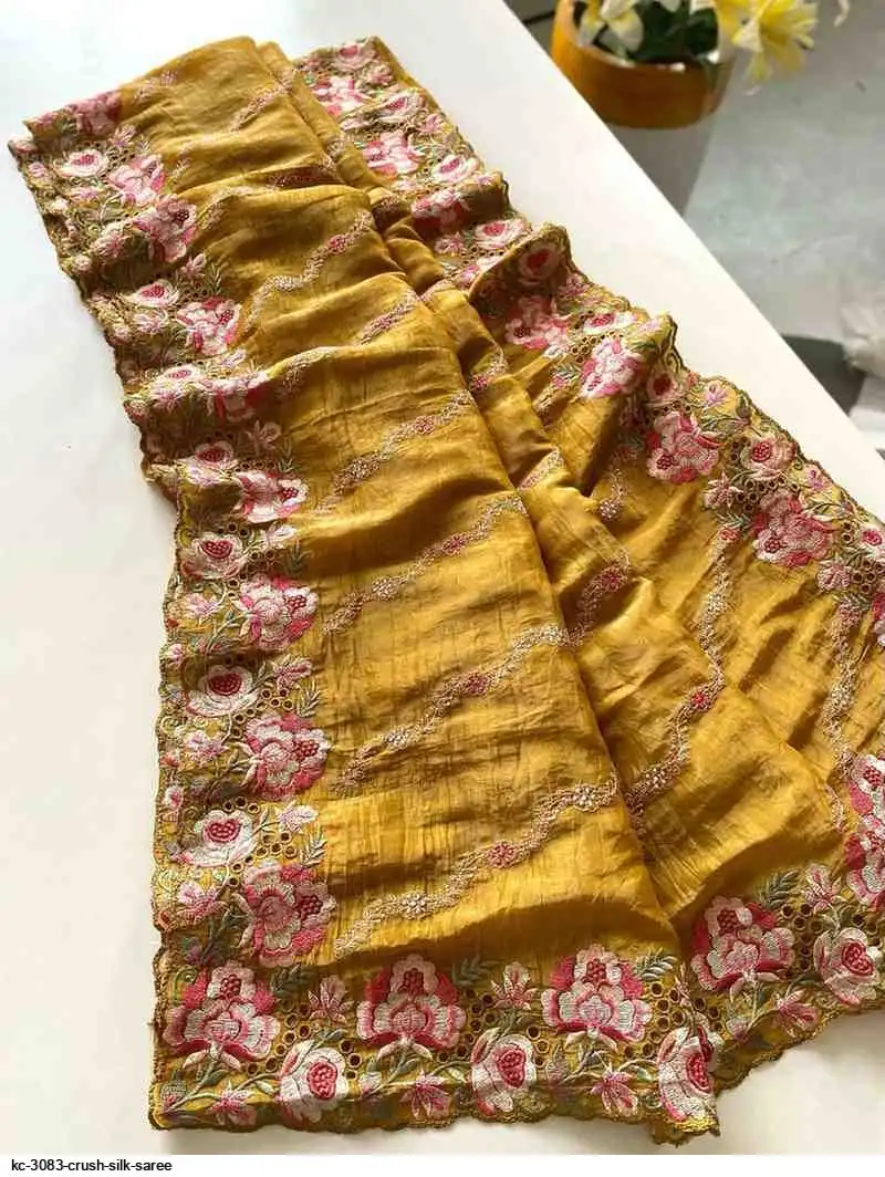 Description - Pure crush silk saree with all over Leheriya embroidery design and cut work design.