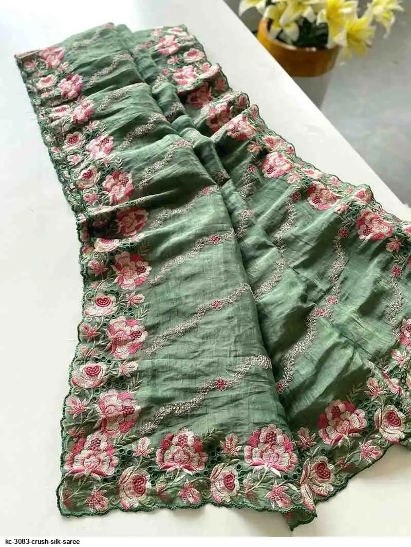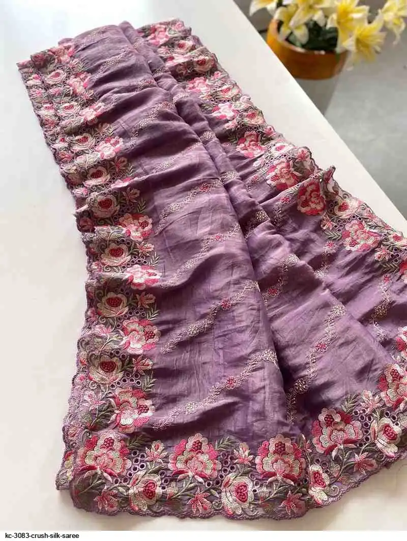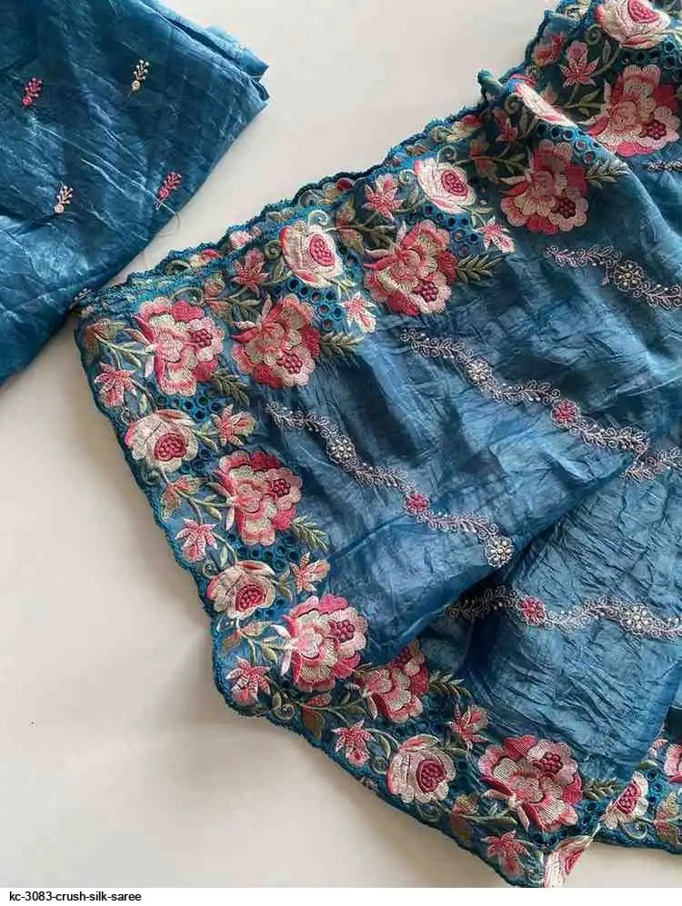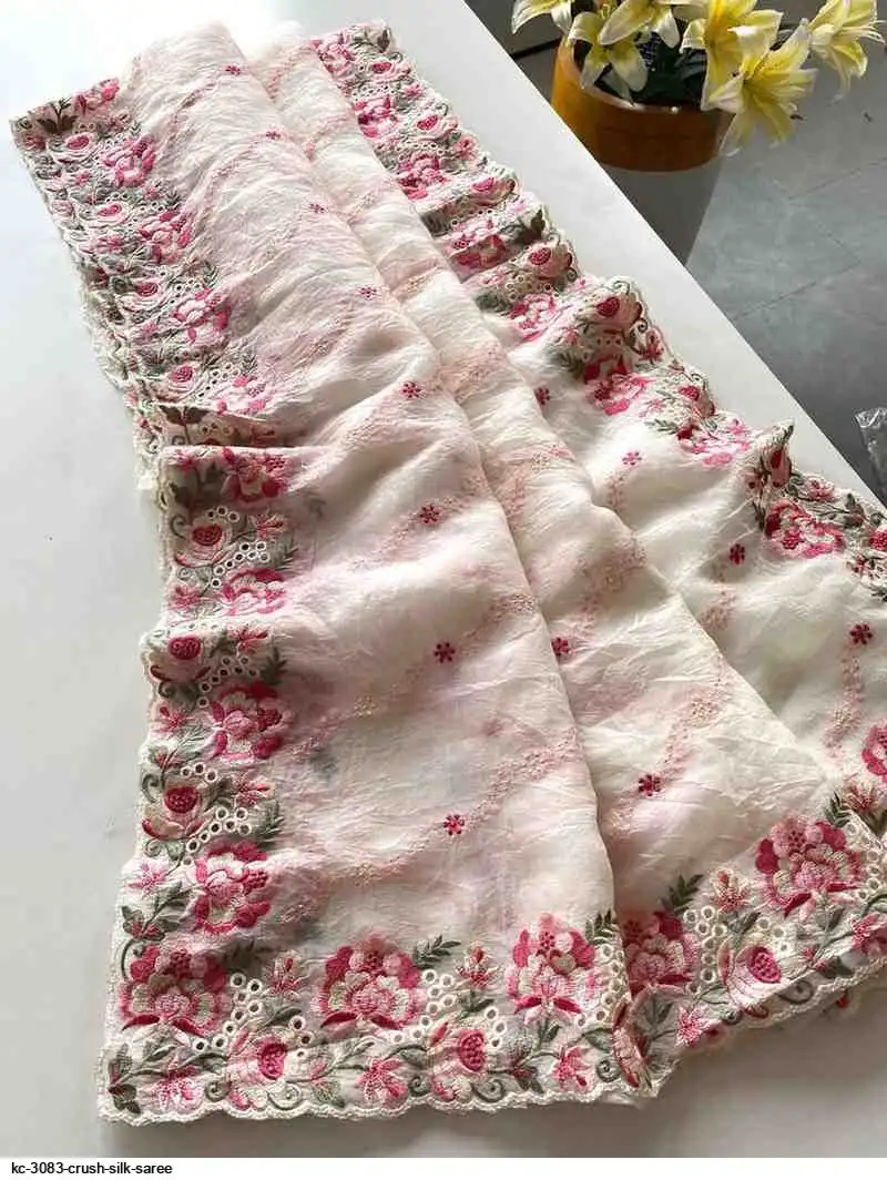 Description - Pure crush silk saree with all over Leheriya embroidery design and cut work design.