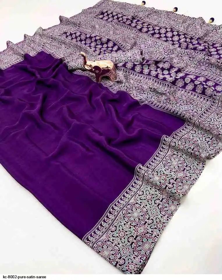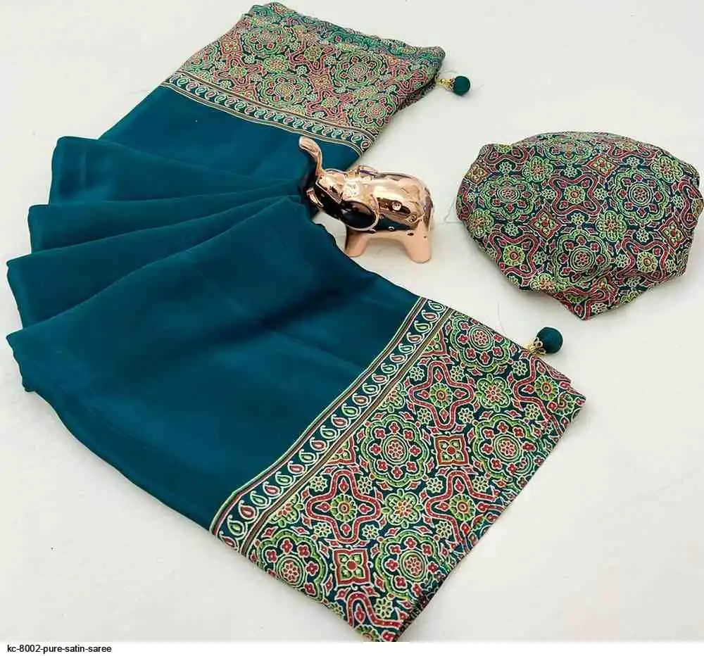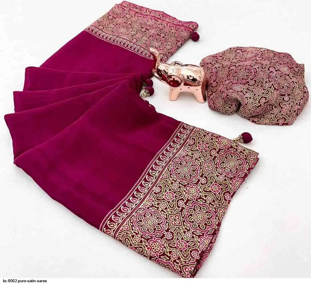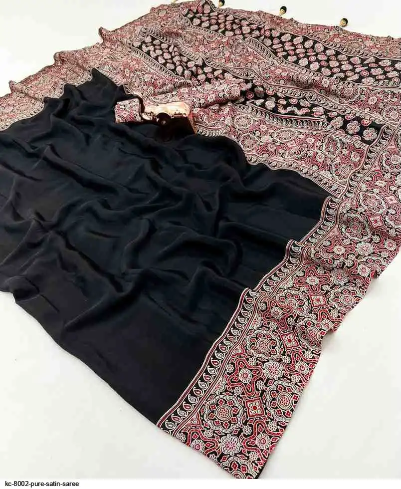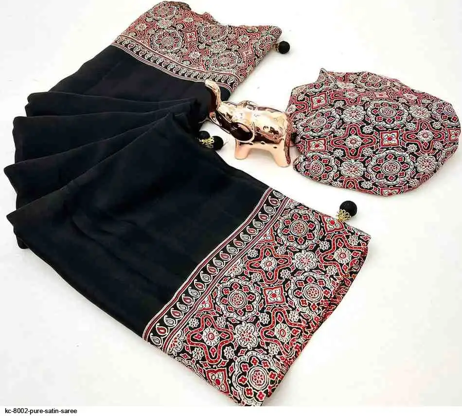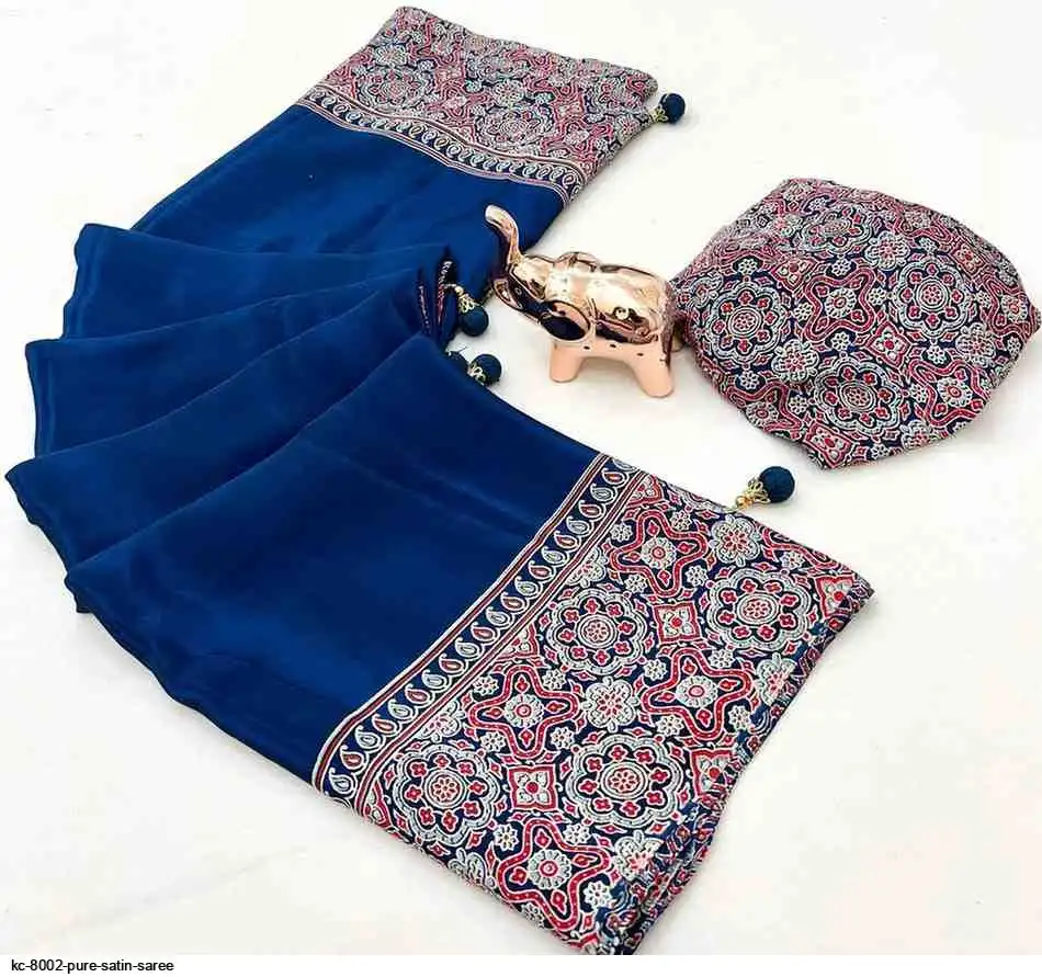 Fabric - Pure Satin with Ajrak printed Sarees rich Pallu with heavy tussles